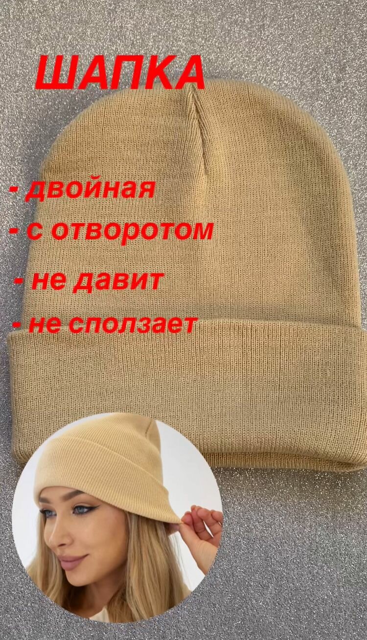 Шапка женская двойная повседневная - Бежевая