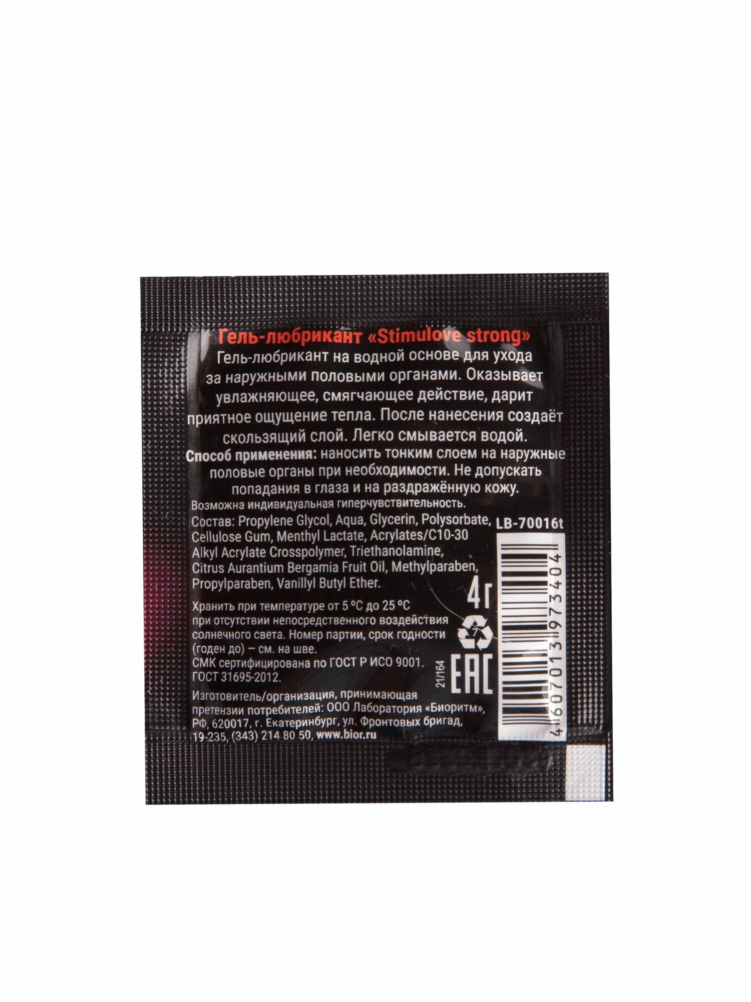 Гель-лубрикант лаборатория "биоритм" StimuLove strong, стимулирующий, 4 г, 20 шт. в упаковке