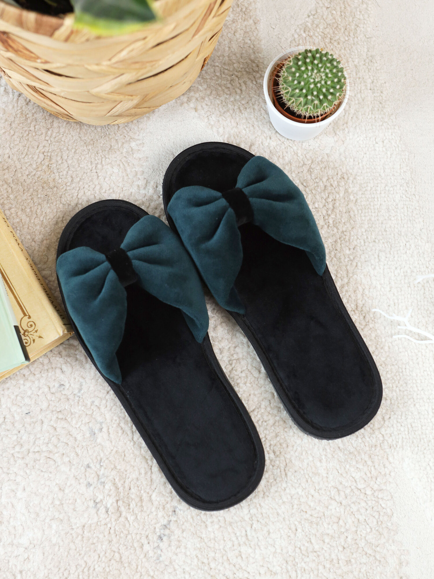 СохранитьТапочки ALBERY тапочки женские/тапочки для дома/велюровые тапочки/тапочки с бантом/домашние тапочки/мягкие женские тапочки/комнатные тапочки/домашняя обувь, размер 40-41, темно-зеленый интересное:
