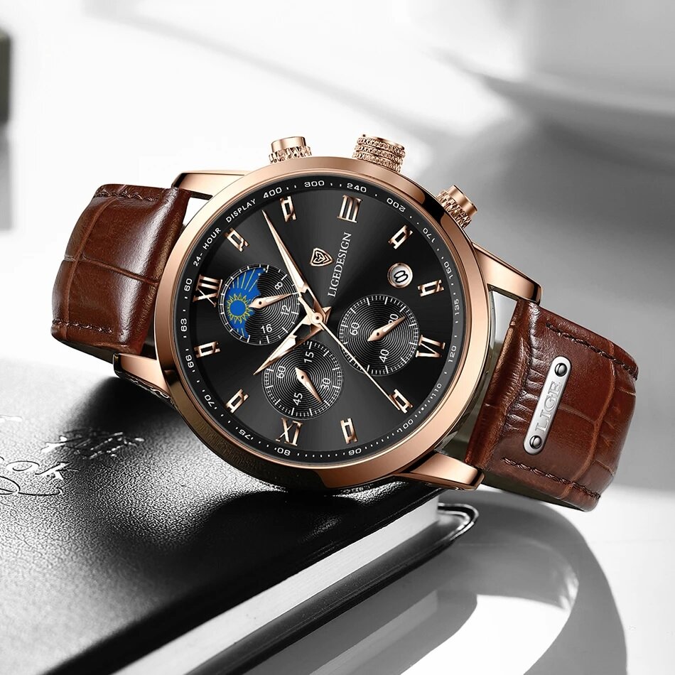 Часы наручные мужские LIGE Classic black1