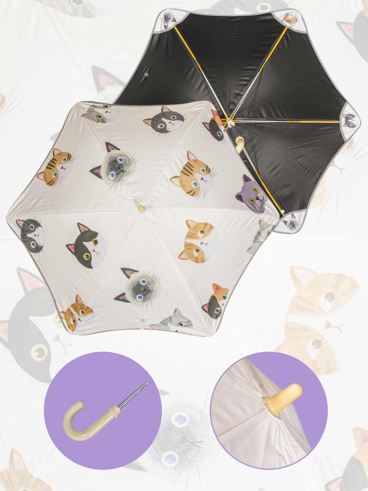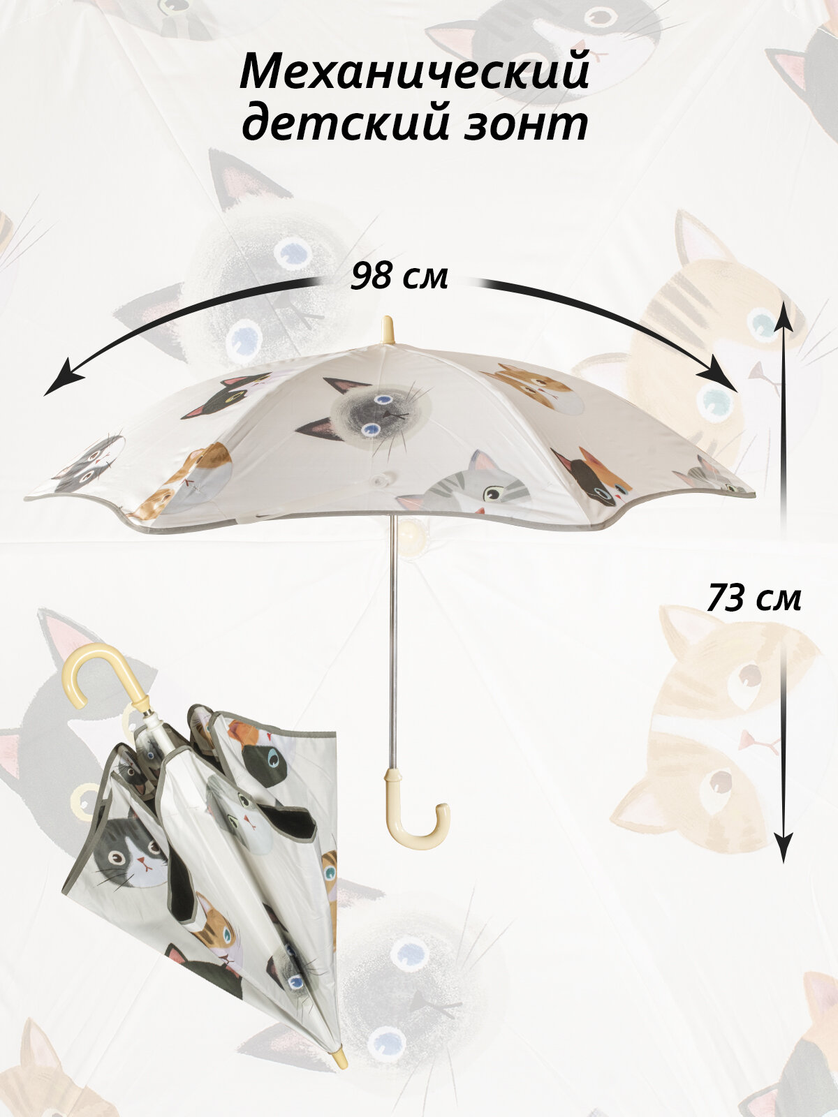 Зонт детский механический складной с рисунком Белоснежка "Пушистые киски", 6 спиц