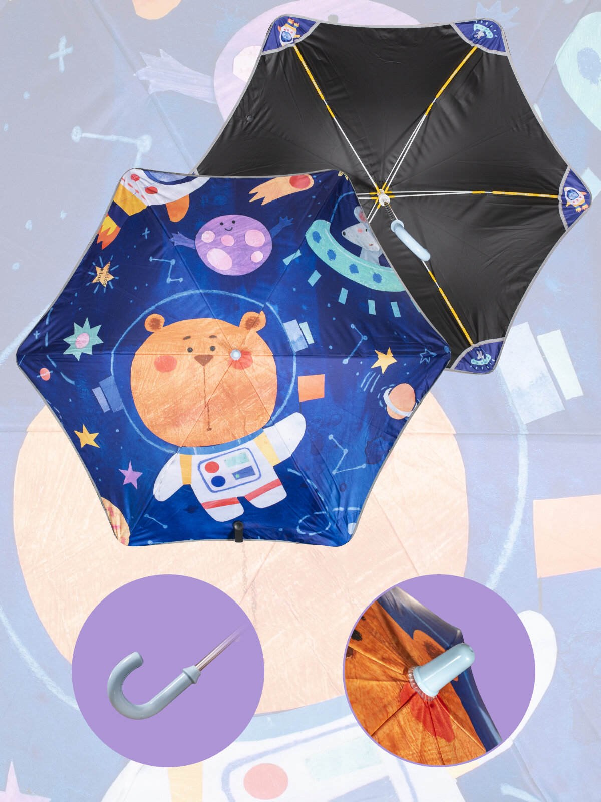 Зонт детский механический складной с рисунком Белоснежка "Полет в космос", 6 спиц