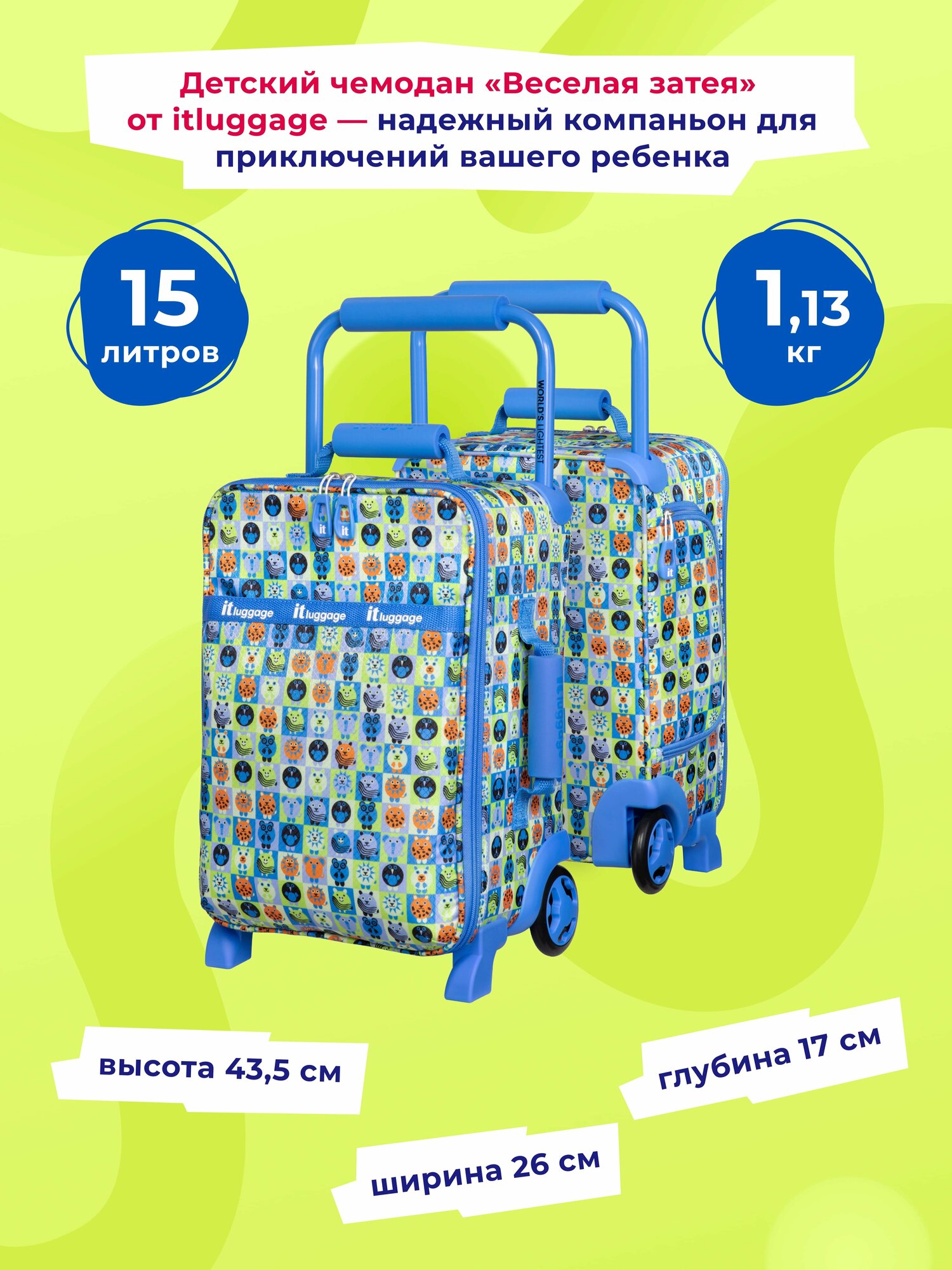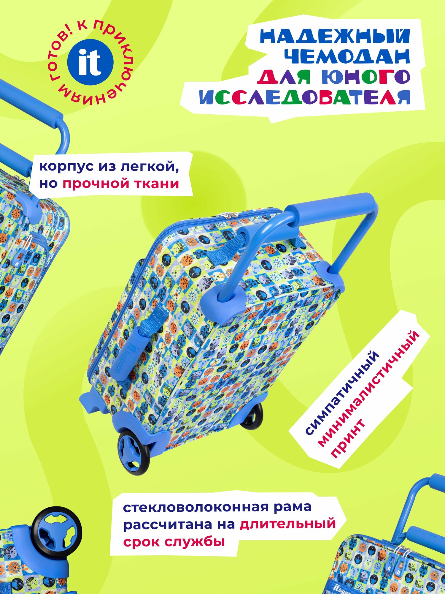 Чемодан-каталка IT Luggage, ручная кладь, 26х43х17 см, голубой интересное: