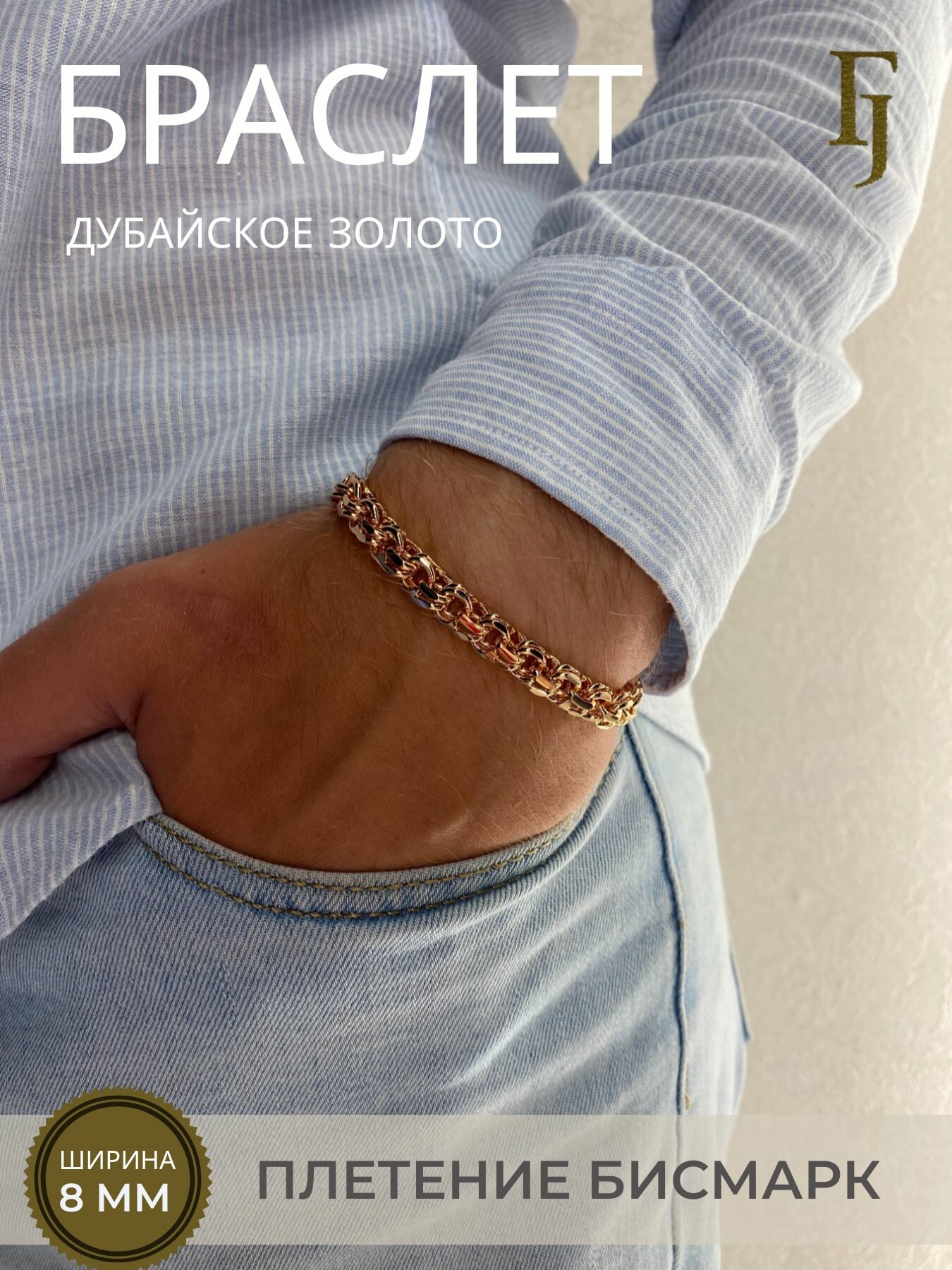 Браслет FJ, 1 шт., размер 21 см, золотой