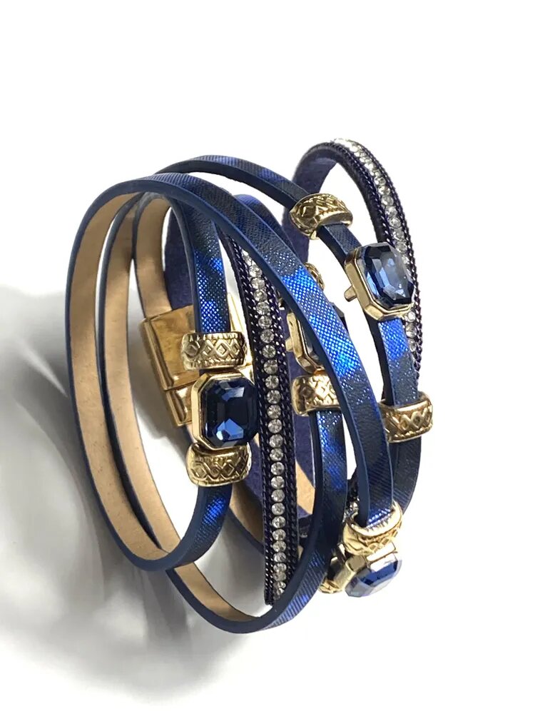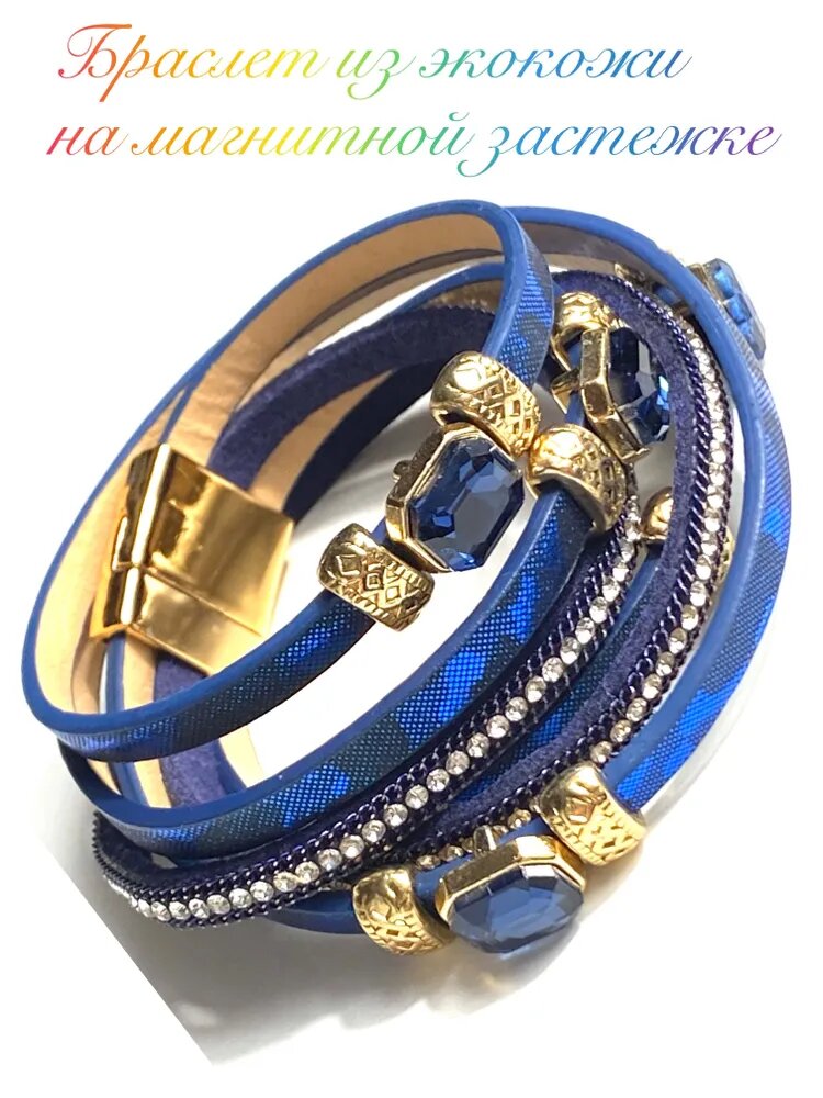 Купить Браслет Florento, стекло, металл, кристалл, 1 шт., размер 17.5 см, синий