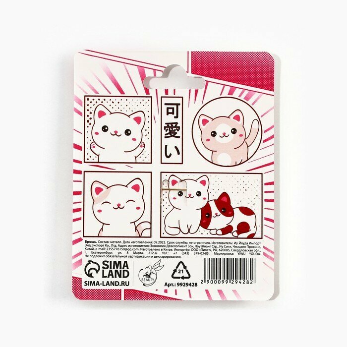 Art beauty Брошь «Котик» , 2.7 х 3.8 см