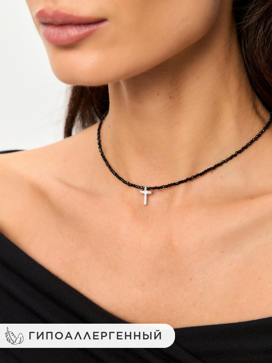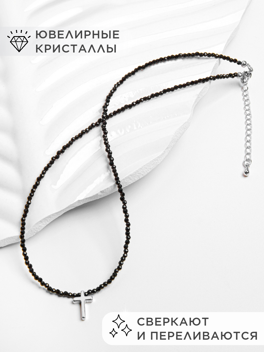 Чокер Noima, кристалл, шпинель, бисер, длина 38 см, серебристый интересное: