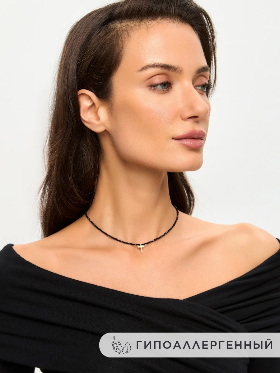 Чокер Noima, кристалл, шпинель, бисер, длина 38 см, серебристый