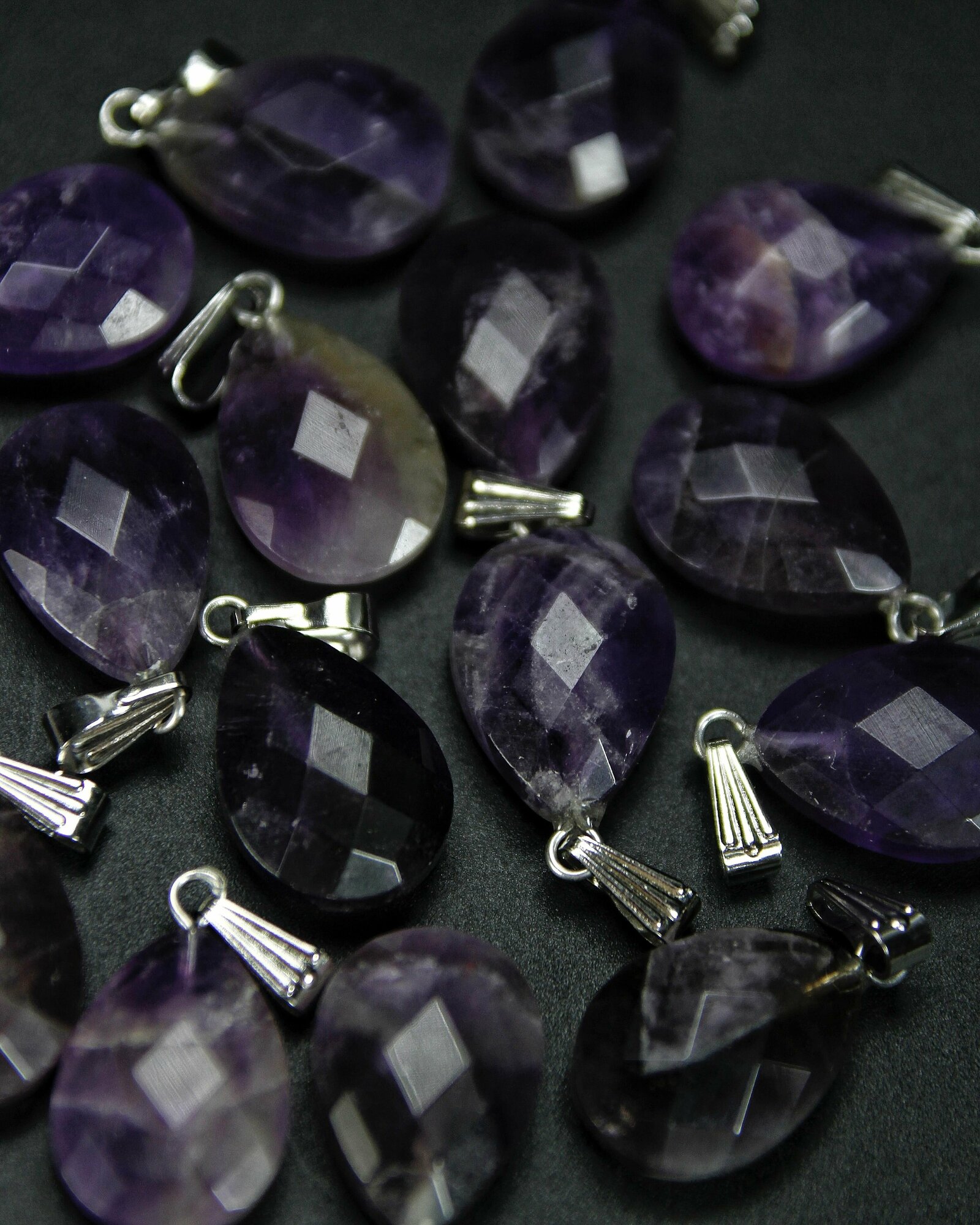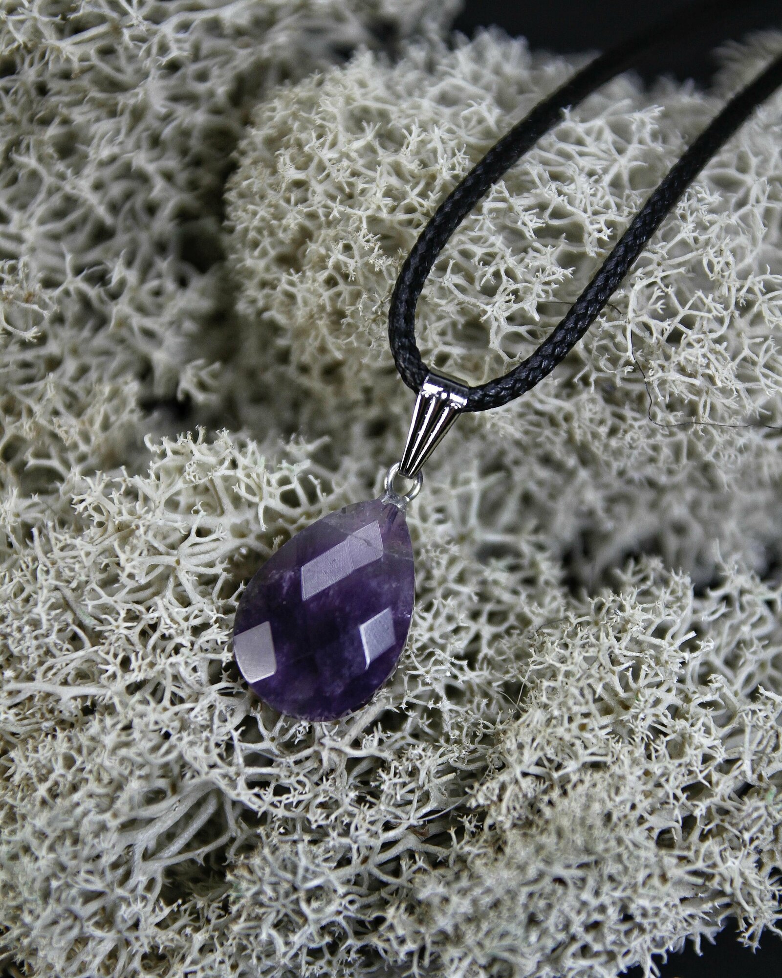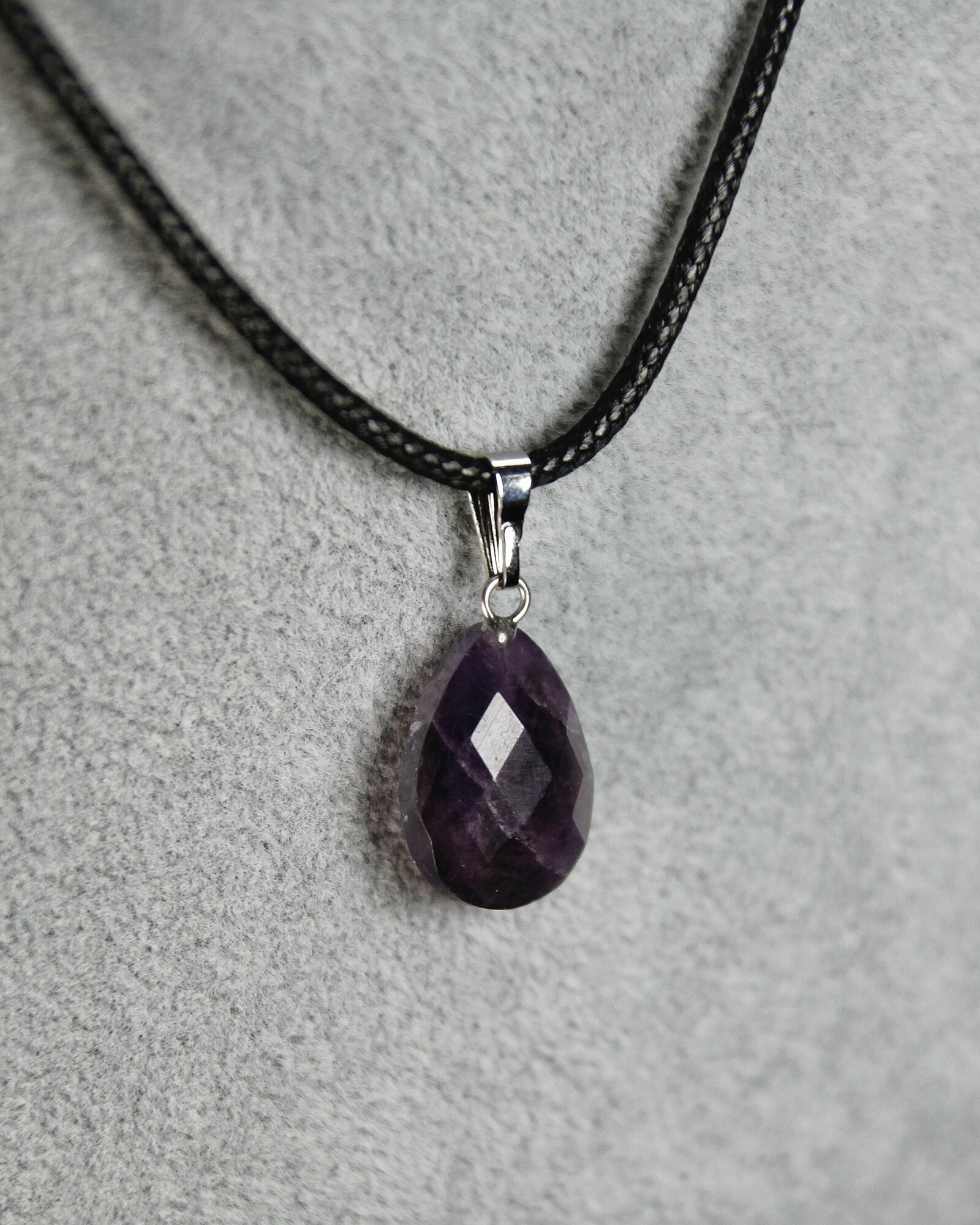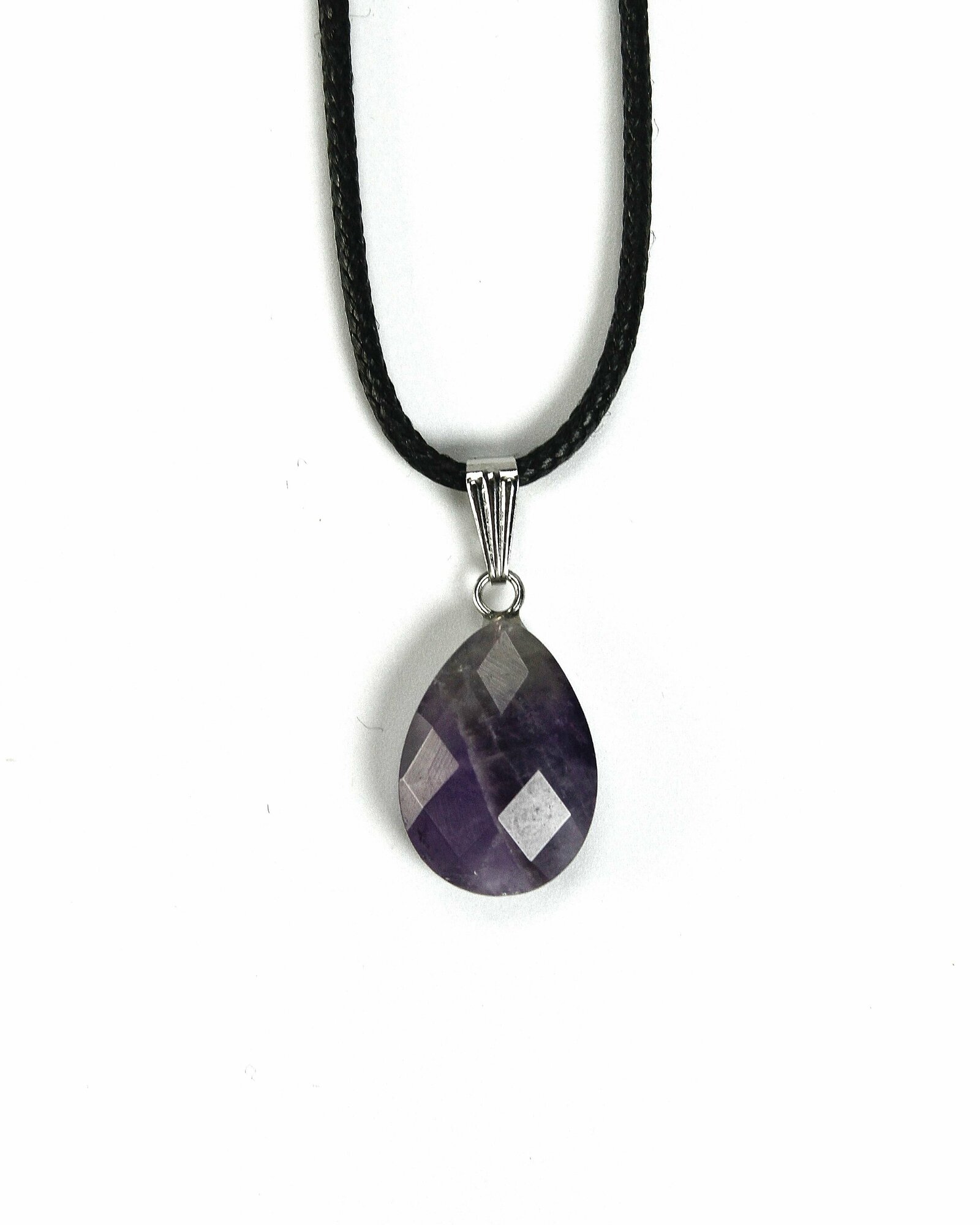 Кулон Аметист капелька - натуральный камень, 18 мм, граненый - подвеска, талисман на шнурке - символ гармонии
