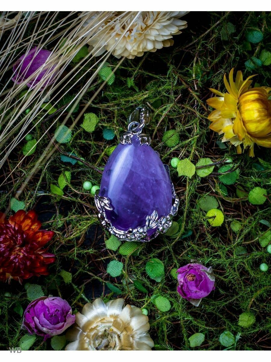 Кулон / Подвеска бижутерная "Роза" ажурная из натурального аметиста подарок девушке женщине на 8 марта