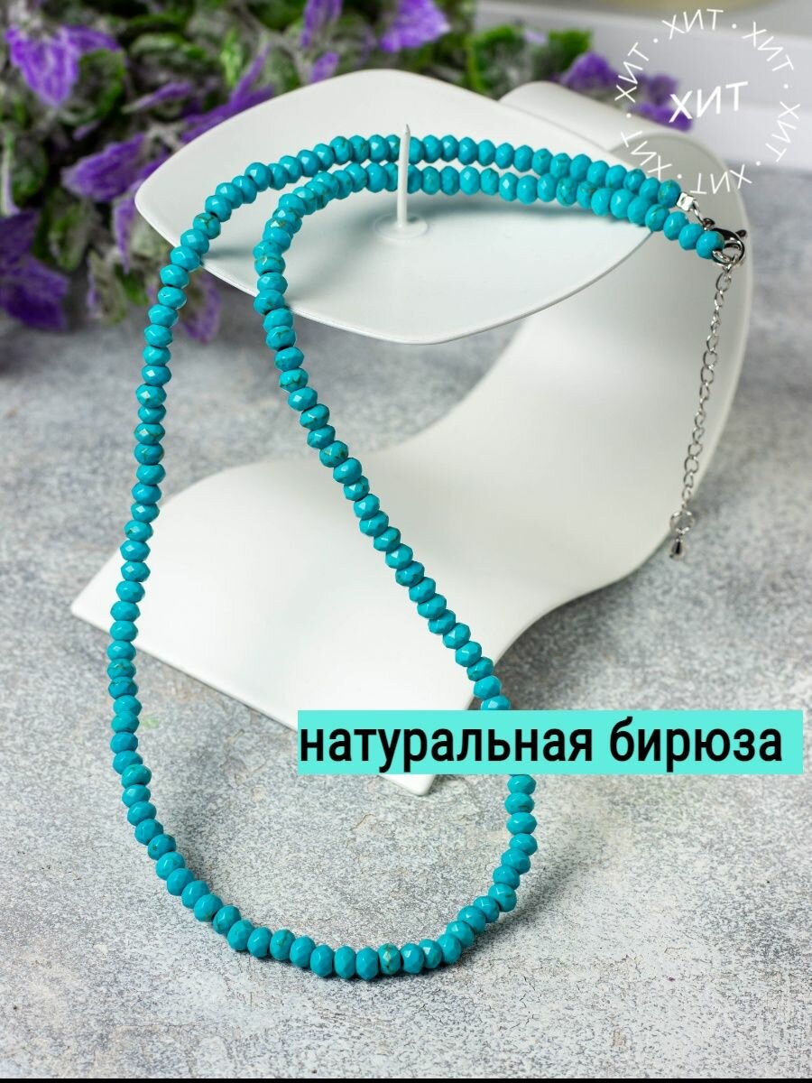 Колье ожерелье 50+5 см из натуральной бирюзы / бусы из натуральных камней женские на шею