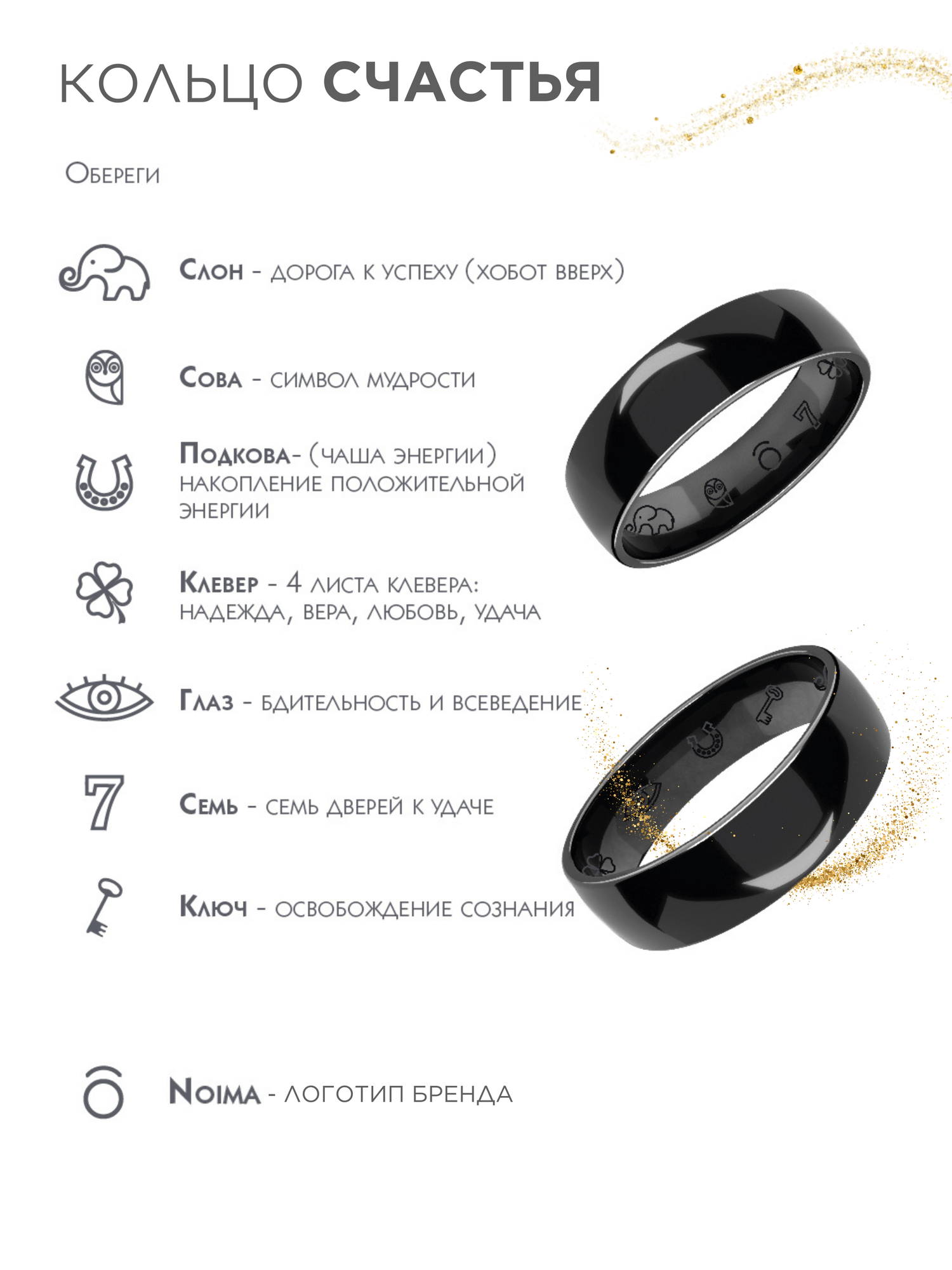 Кольцо из керамики "Знаки счастья" черное женское мужское NOIMA 19 размер, парные кольца
