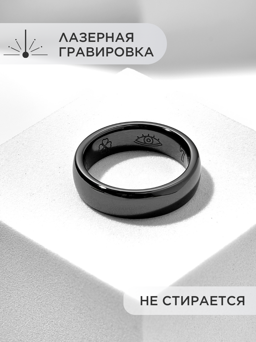 Кольцо оберег из керамики "Знаки счастья" черное женское мужское 19.5 размер, парные кольца
