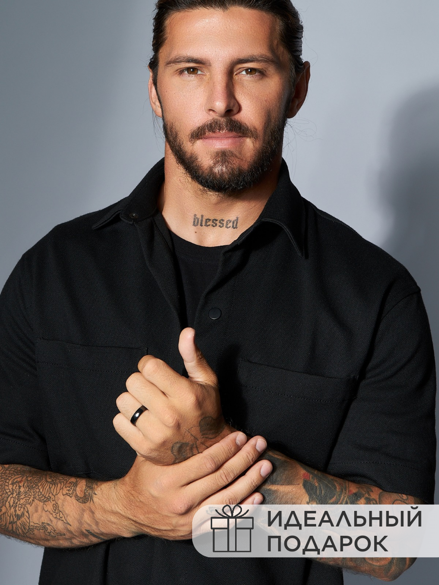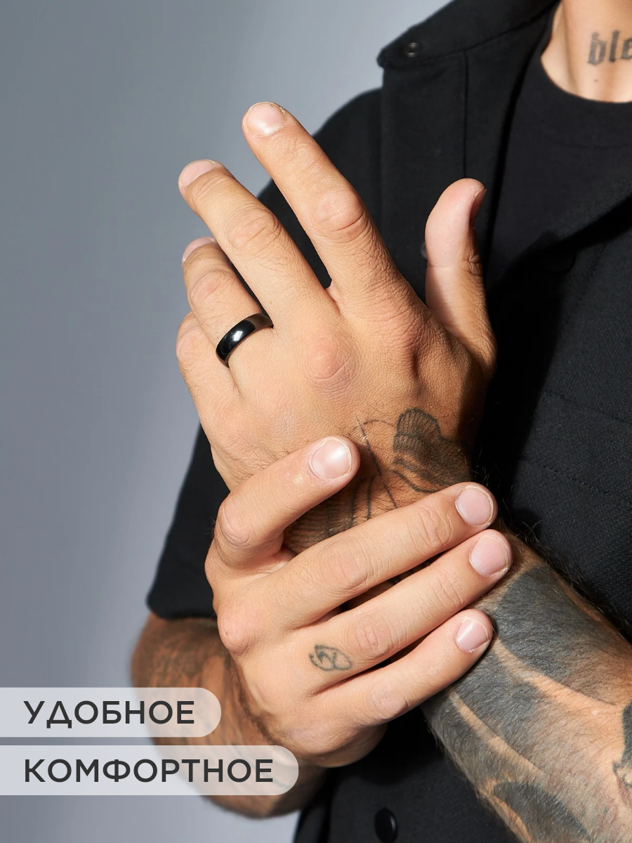 Кольцо из керамики "Знаки счастья" черное женское мужское 16.5 размер, парные кольца