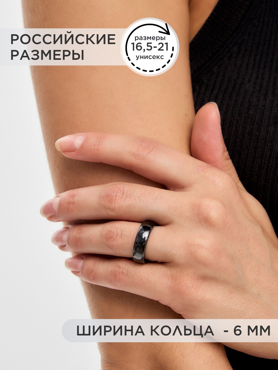 Кольцо оберег из керамики "Знаки счастья" черное женское мужское 16.5 размер, парные кольца