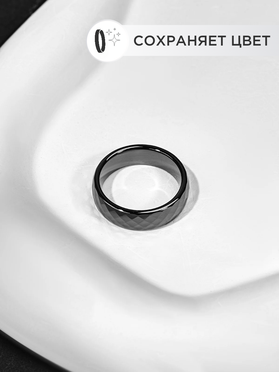 NOIMA Кольцо керамическое женское мужское черное граненное 6 мм 21 размер