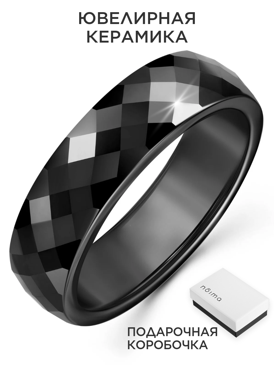 NOIMA Кольцо керамическое женское мужское черное граненное 6 мм 21 размер
