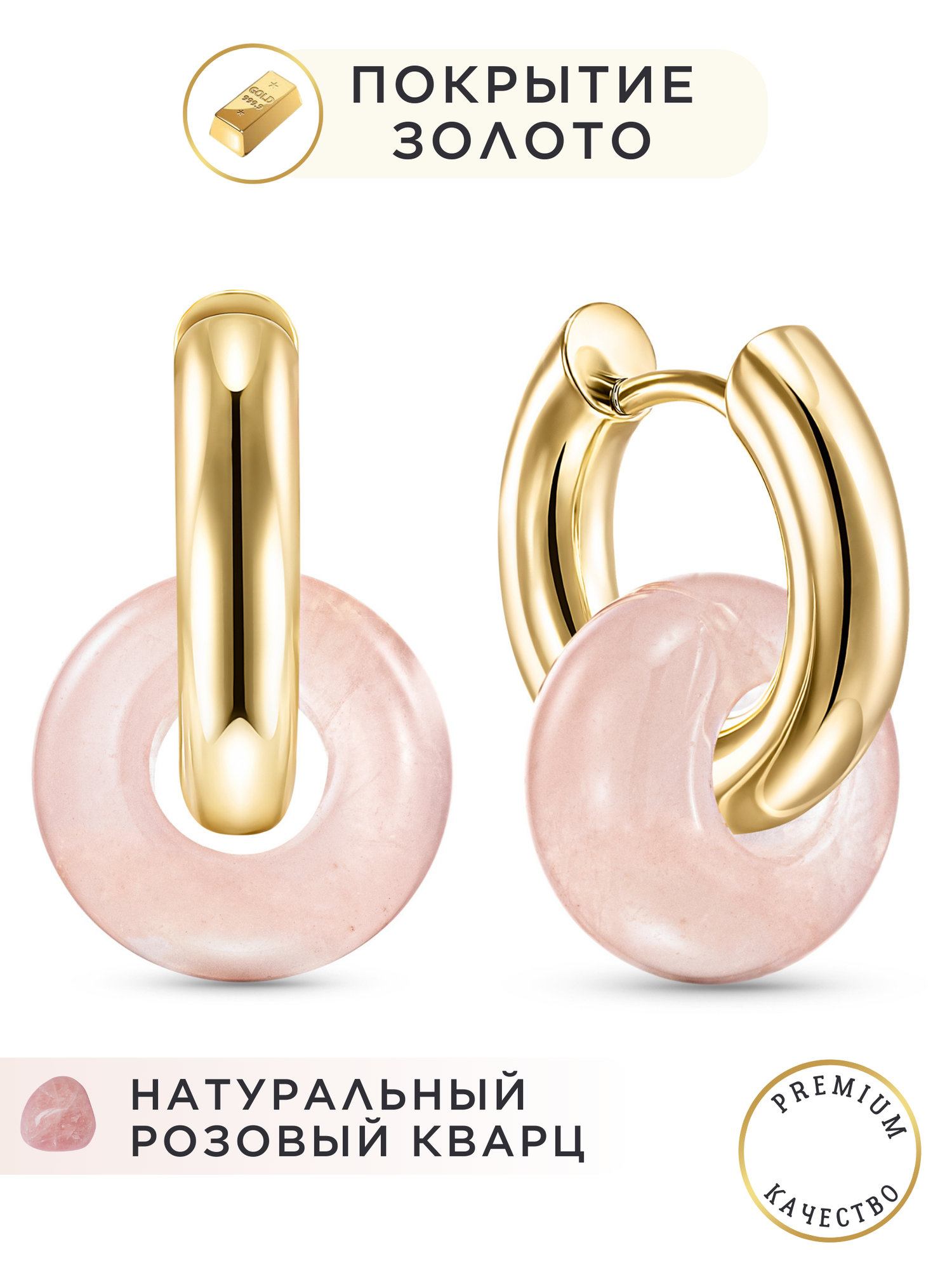 Серьги кольца с подвесками розовый кварц