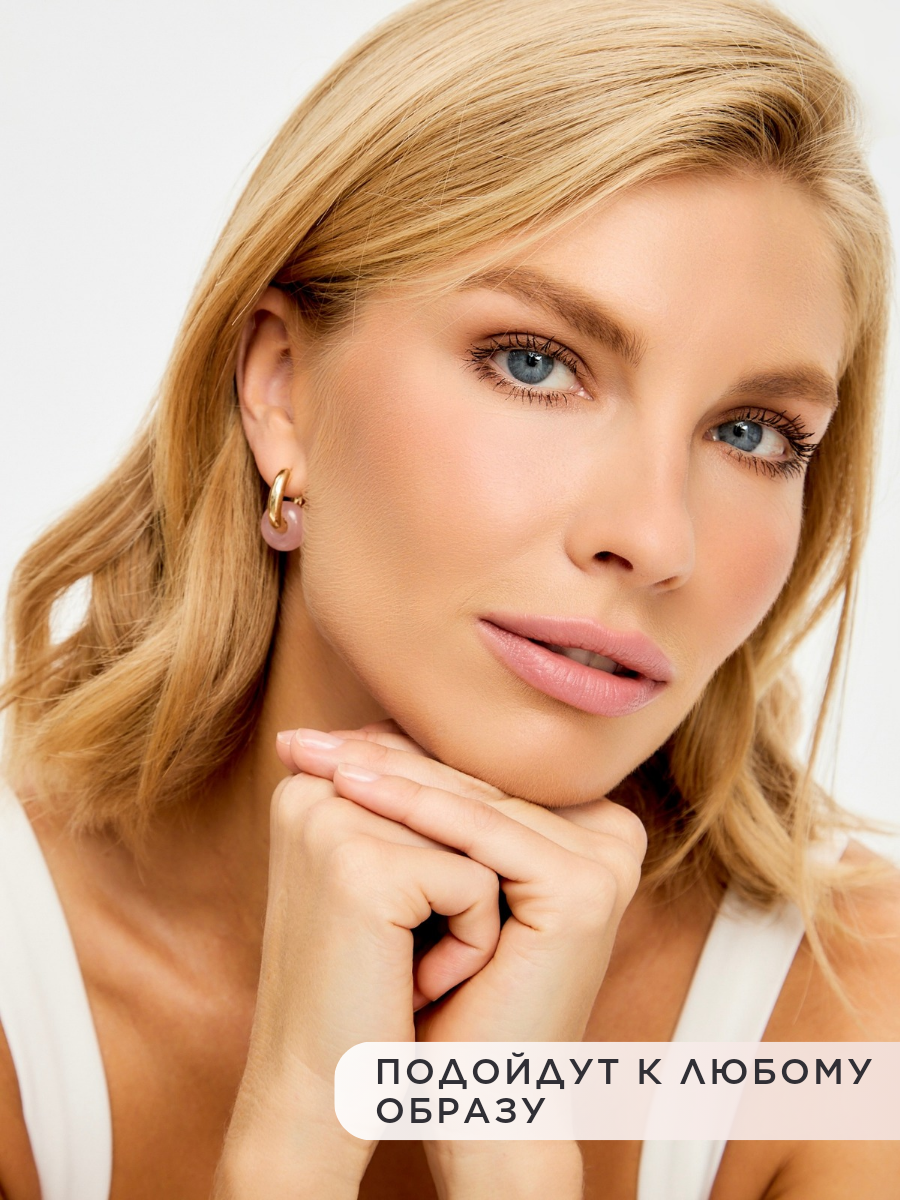 Купить Серьги-трансформеры Noima, кахолонг, кварц, агат, размер 20 мм, розовый в золоте