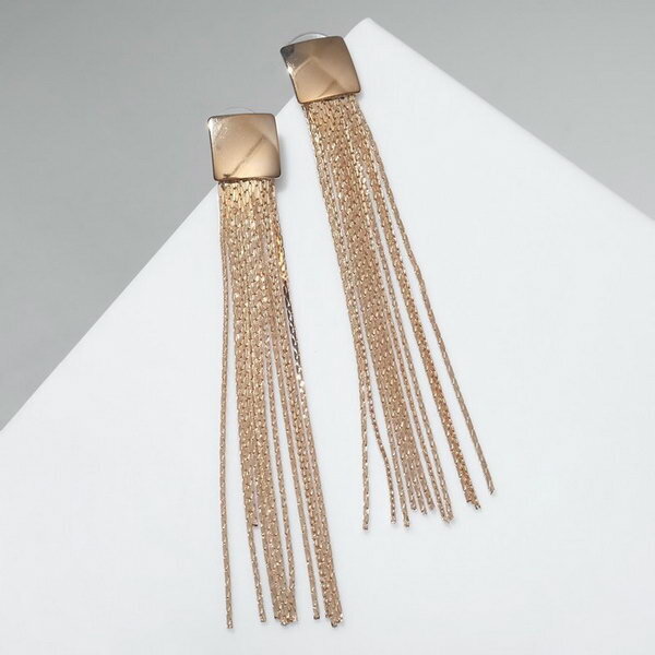 Серьги висячие "Голливуд" квадрат с нитями, цвет золото 7749671