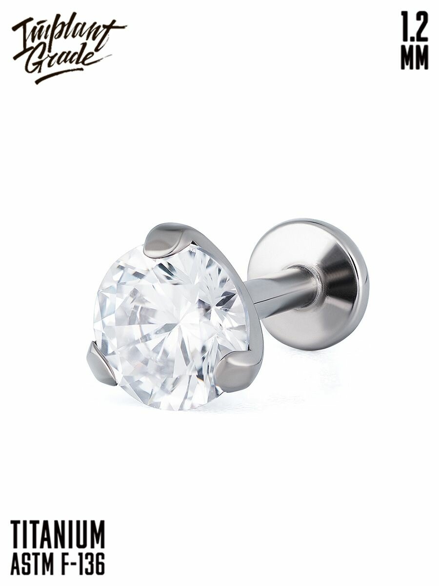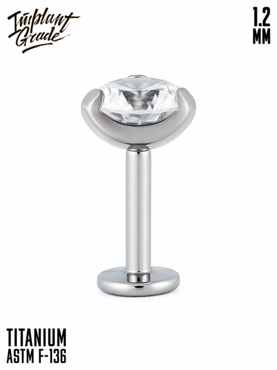 Пирсинг Implant Grade лабрет титан Crystal gem 1.2 мм - 3 мм