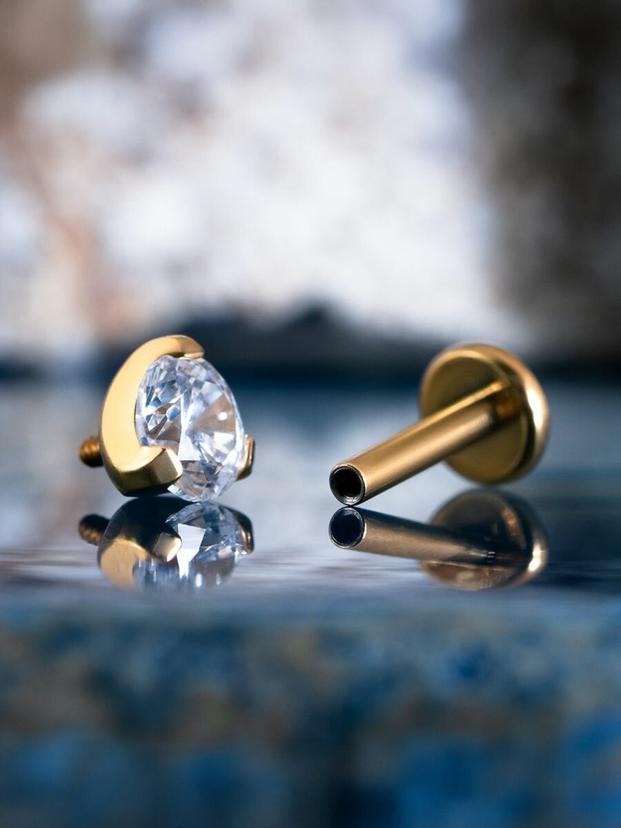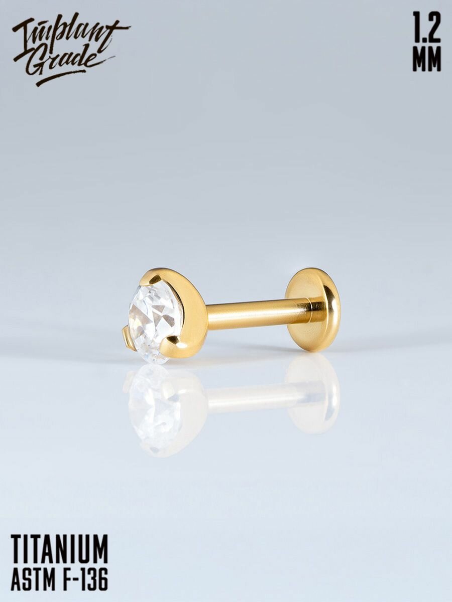 Пирсинг Implant Grade лабрет титан фианит Gold 1.2 мм - 2.5 мм