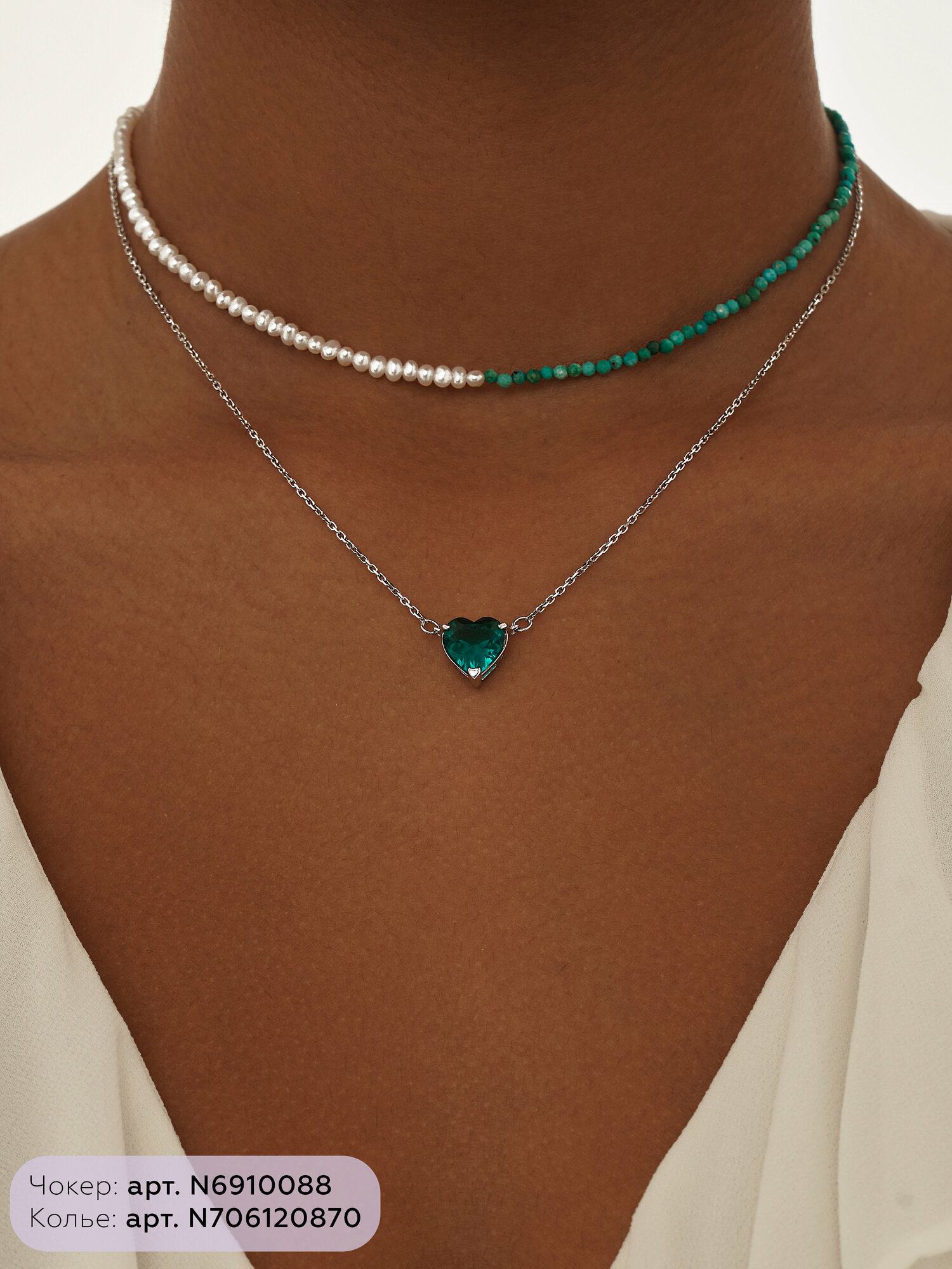 Колье MIESTILO, серебро, 925 проба, родирование, кварц синтетический, длина 45 см., зелeный интересное: