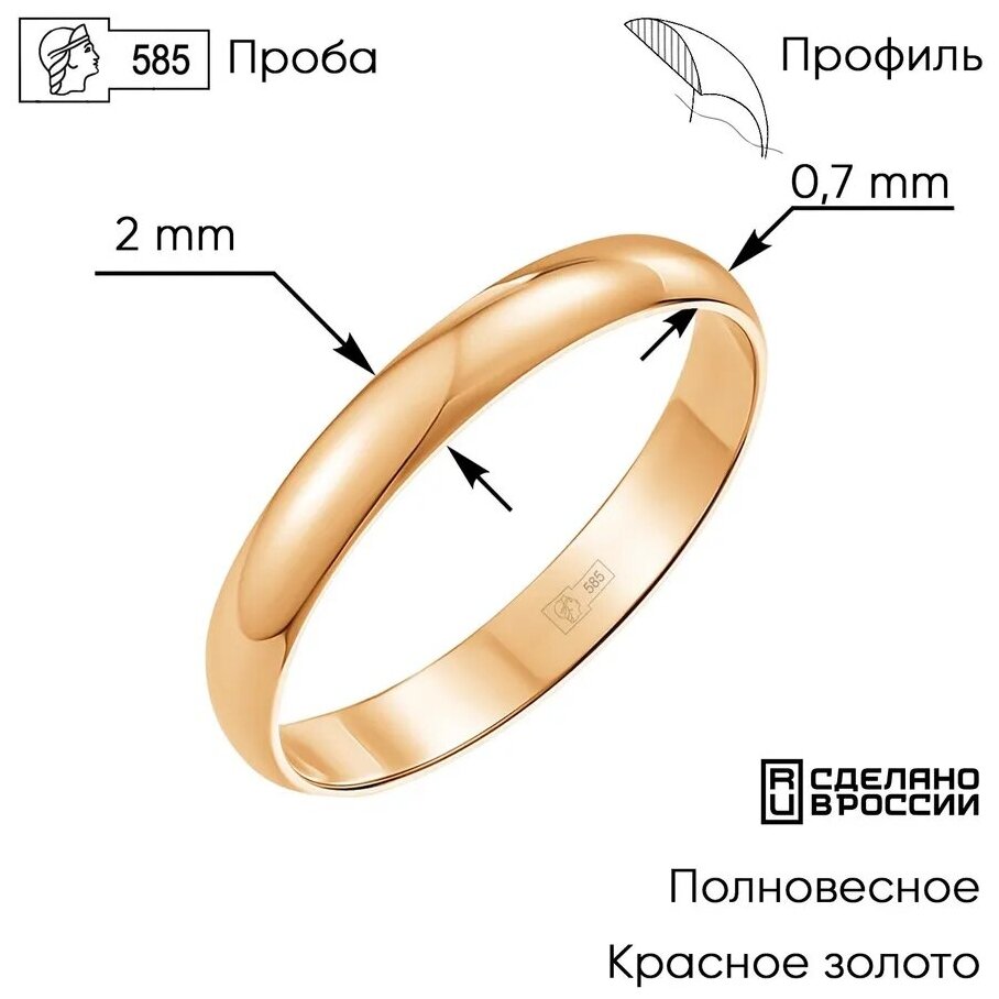 Кольцо обручальное ZOLOTO.GOLD, красное золото, 585 проба, размер 22, ширина 2 мм, красный