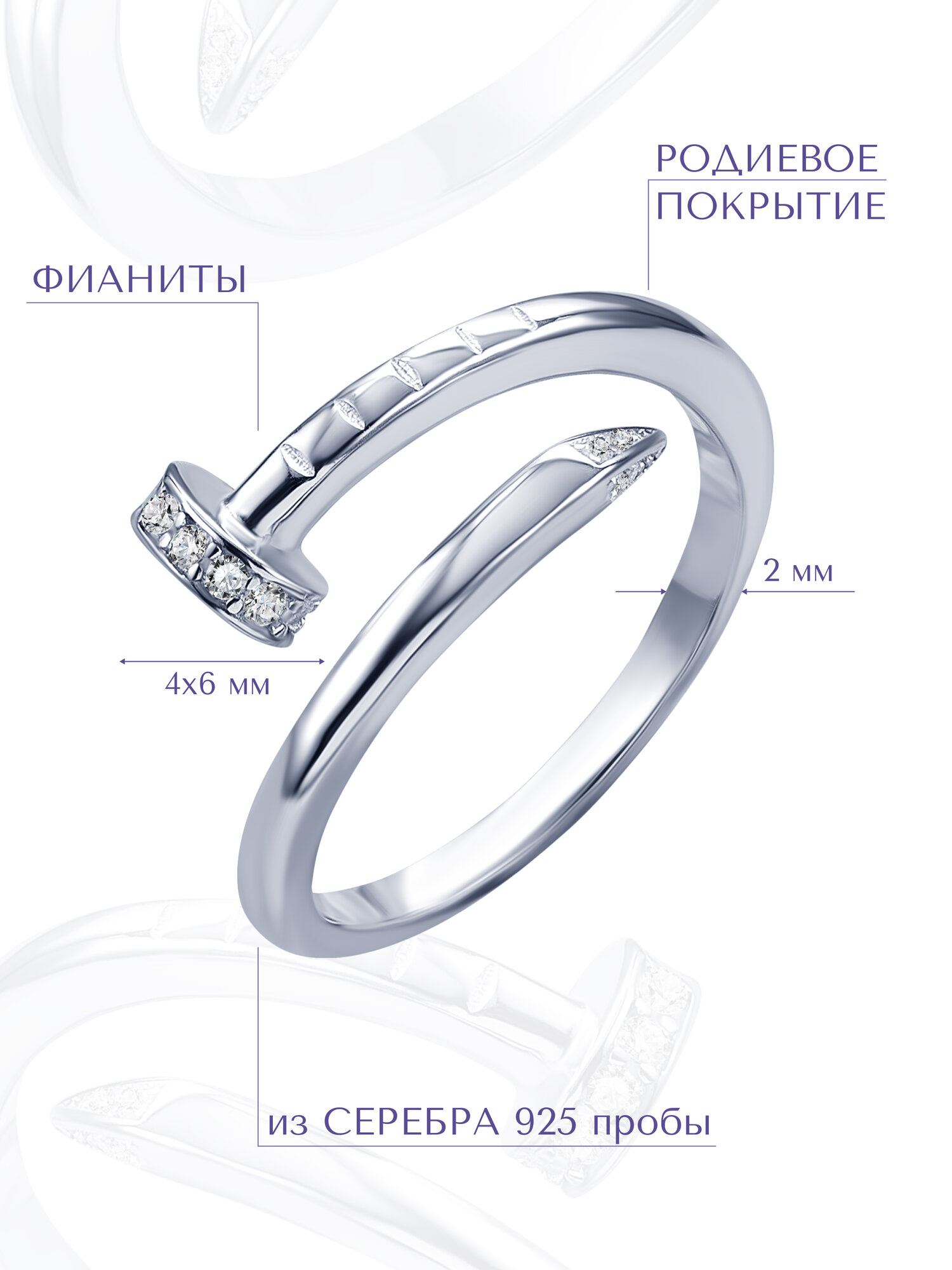 Кольцо ювелирное MIESTILO серебро 925, серебряный гвоздь, 17 размер
