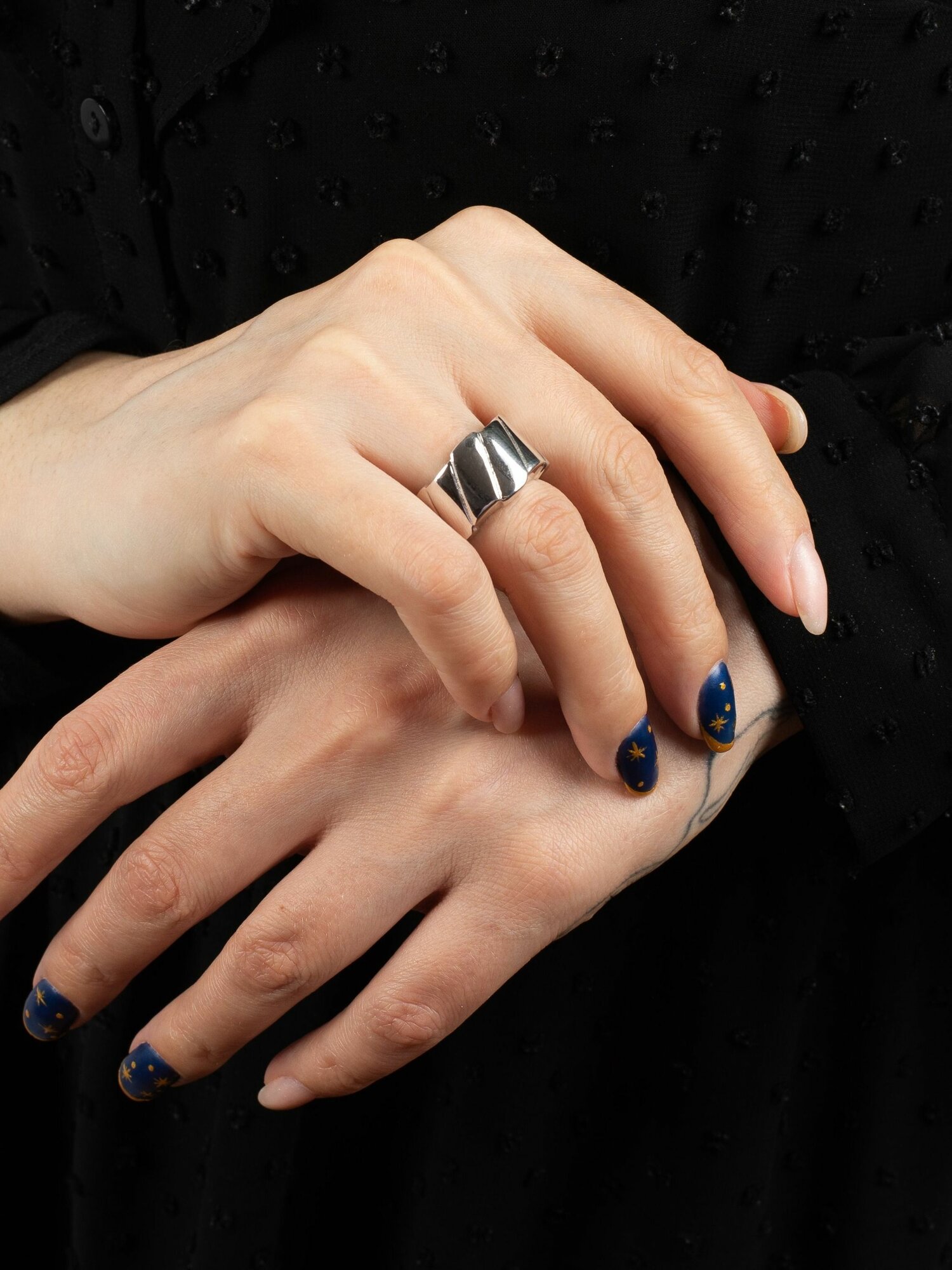 Сереброника, Кольцо женское широкое из серебра 925 пробы, коллекция "Elements"