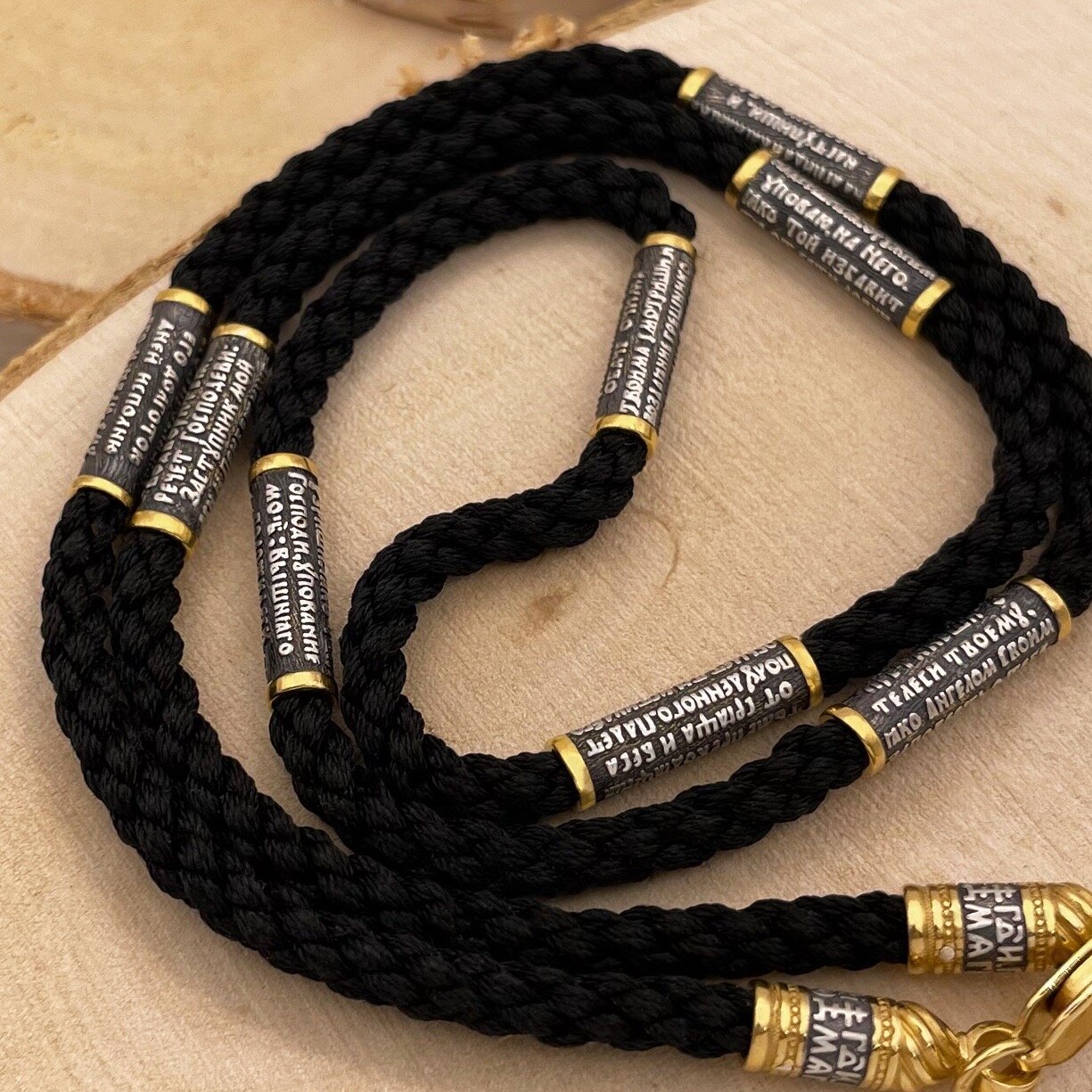 Шелковый шнурок с серебряными вставками молитва 90 Псалом золочение 70 см