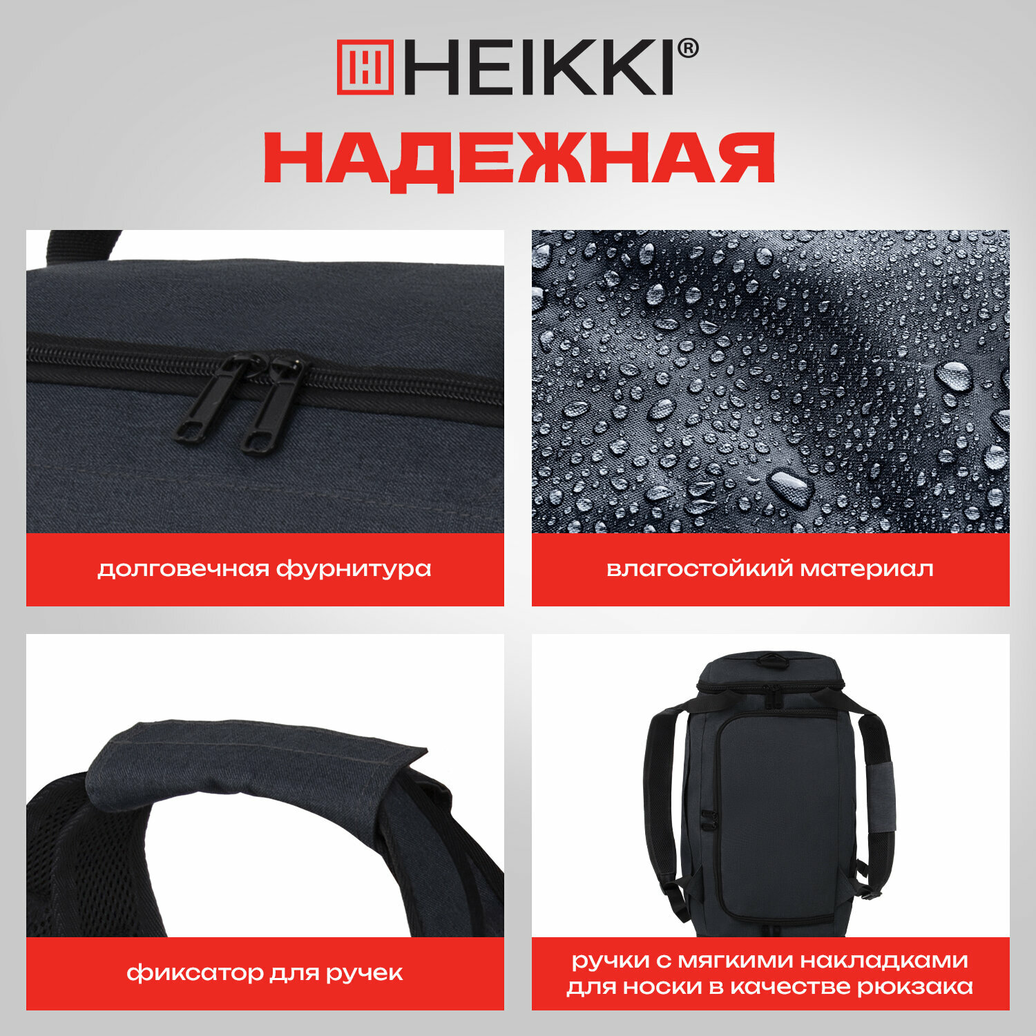 СохранитьСумка спортивная HEIKKI, 48х23х25 см, ручная кладь, серый интересное: