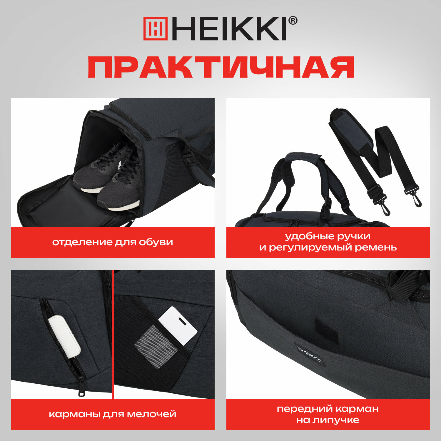 Heikki Сумка спортивная Travel с отделением для обуви, 7 карманов, темно-серая, 23х48х25 см, 272628