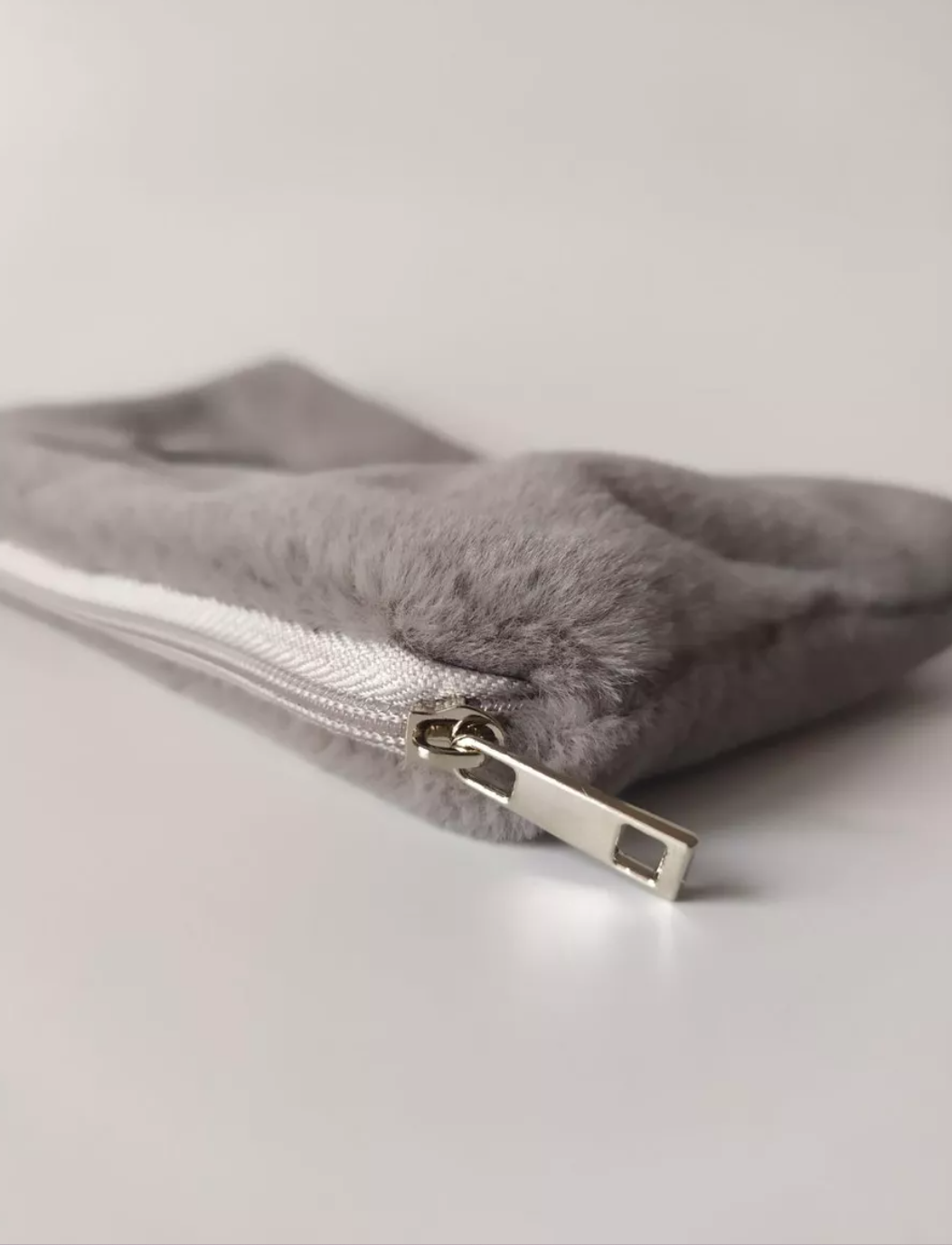 Косметичка пушистая, змейка серая