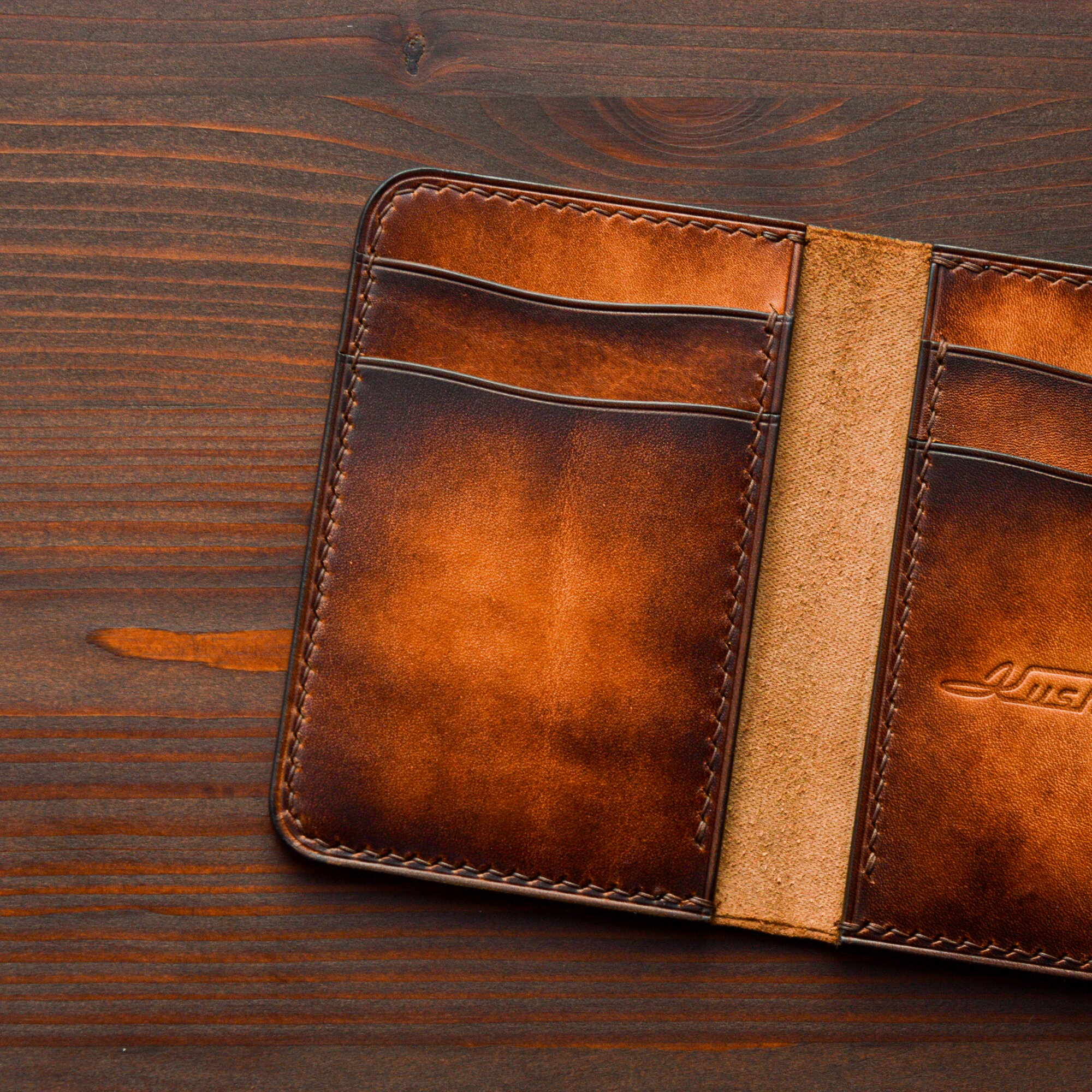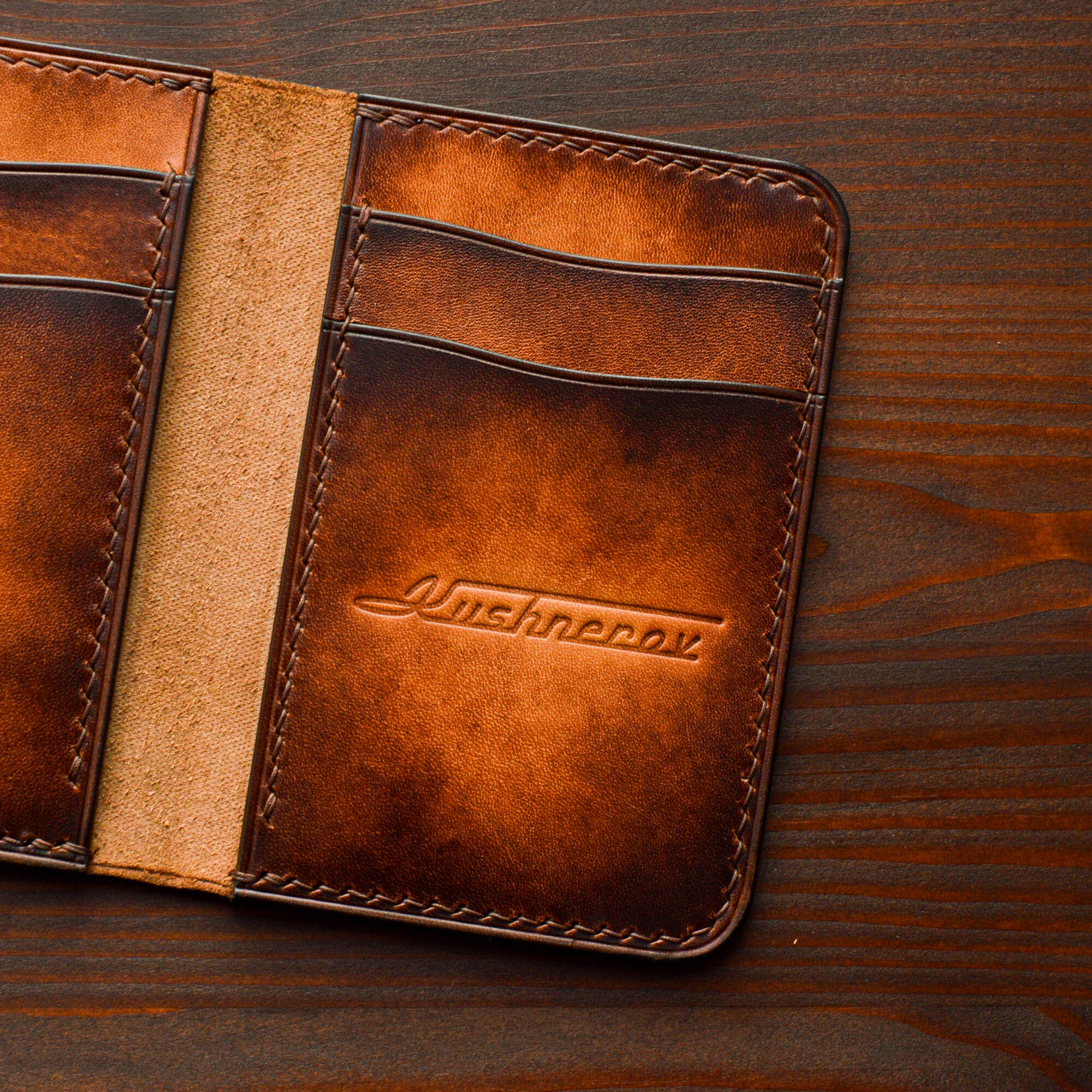 Картхолдер из натуральной кожи ручной работы Янтарь / Кожаный мини кошелек. Цвет коричневый