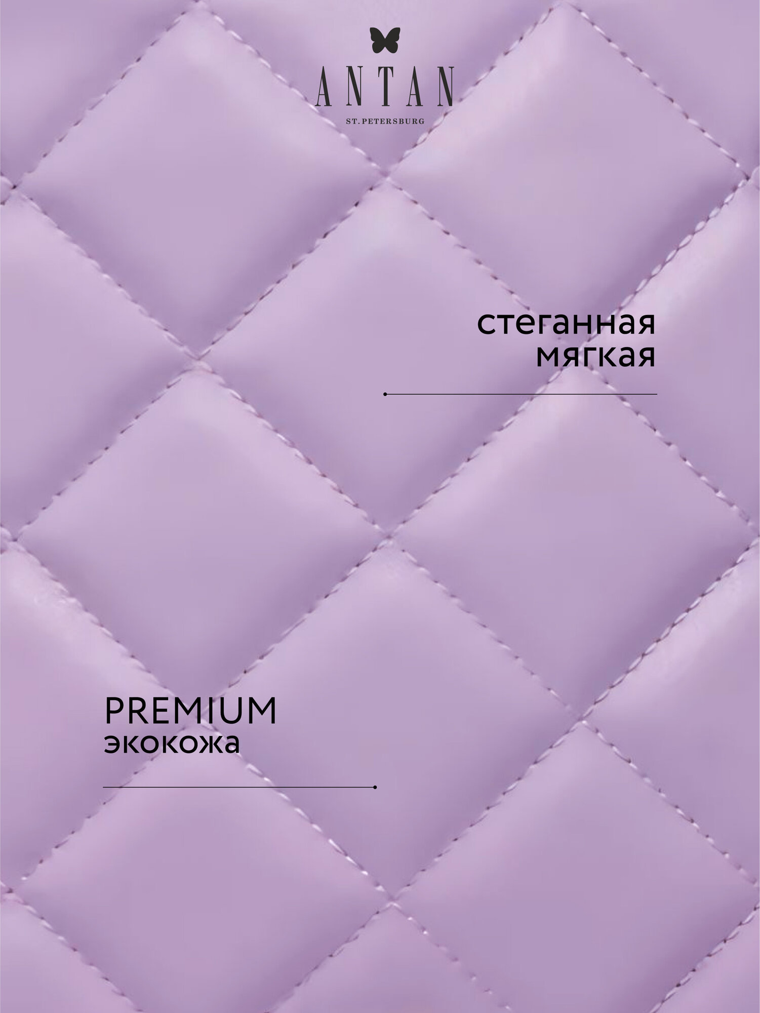 Сумка тоут Antan, фактура стеганая, сиреневый интересное: