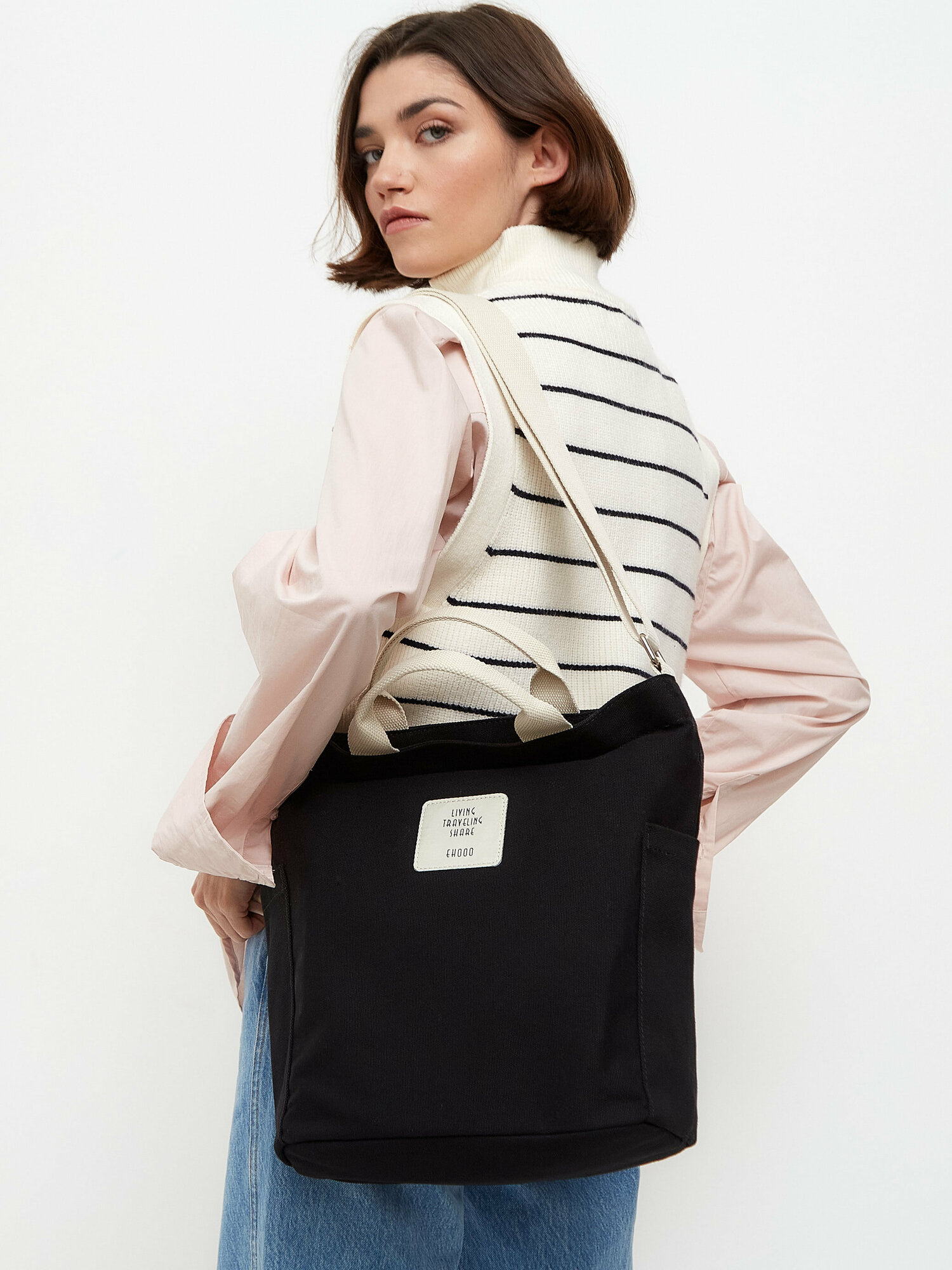Сумка шоппер AVGUST ACCESSORIES, фактура гладкая, черный интересное:
