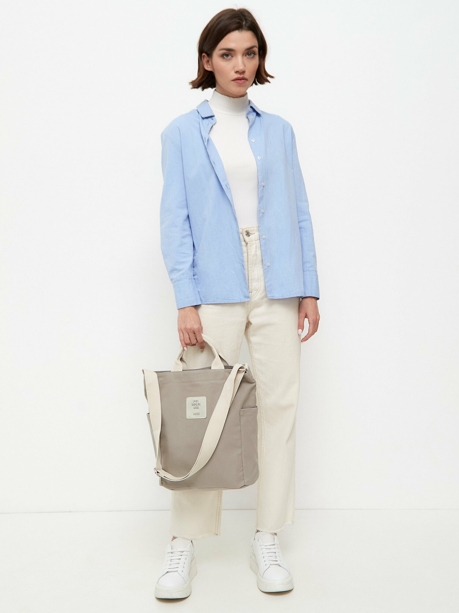 Шоппер на молнии сумка женская через плечо шопер бежевый
