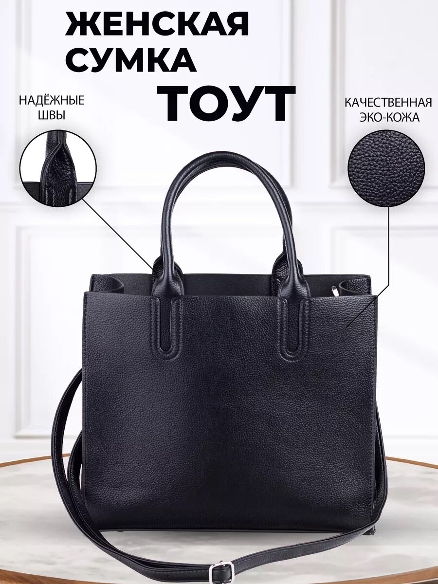 Сумка тоут , фактура матовая, гладкая, черный интересное: