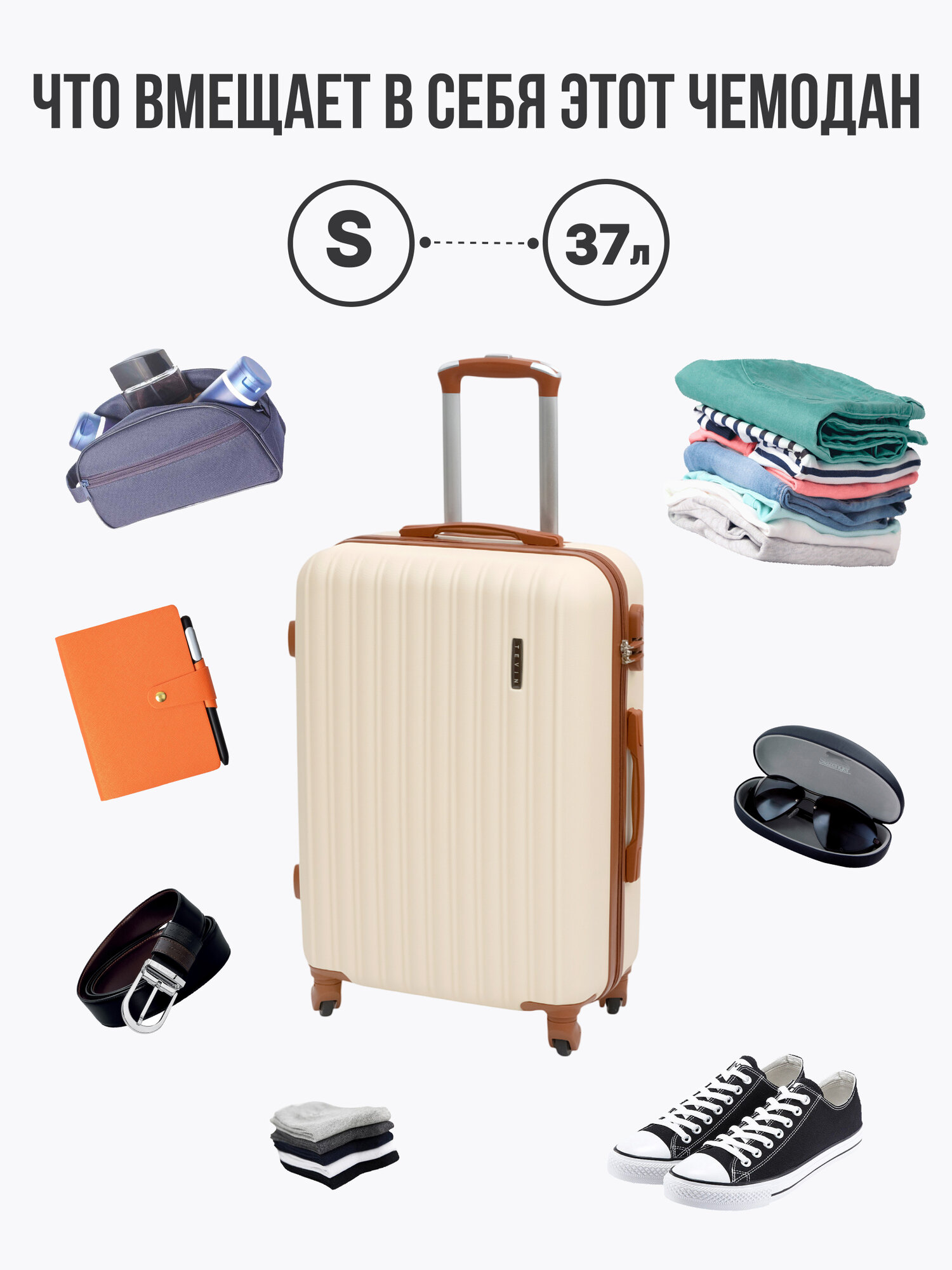 Чемодан на колесах дорожный ручная кладь в самолет s TEVIN размер С маленький 55 см ручной 37 л cabin 21" легкий 2.5 кг прочный abs пластик бежевый