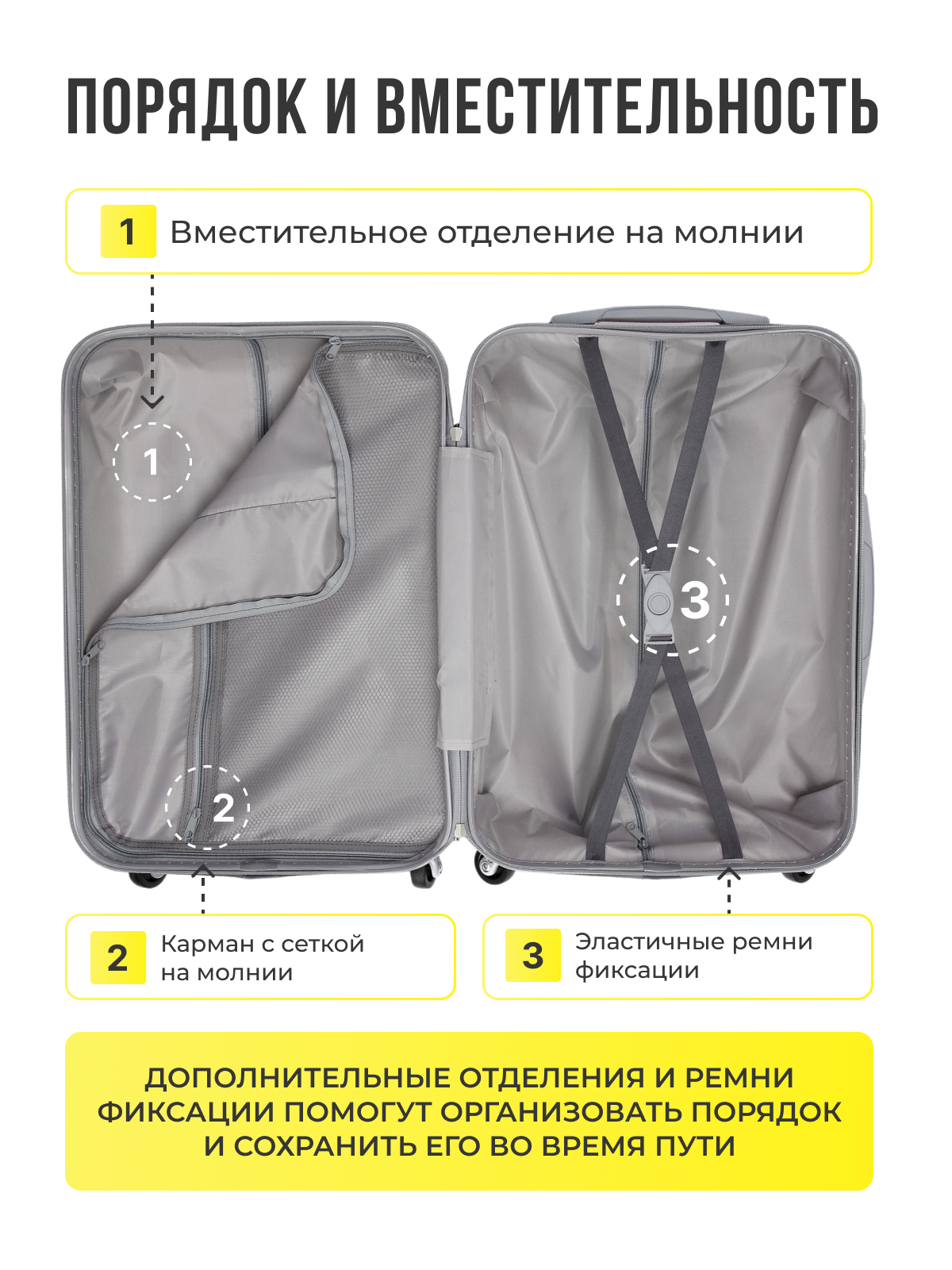СохранитьЧемодан TEVIN, 37 л, размер S, желтый интересное:
