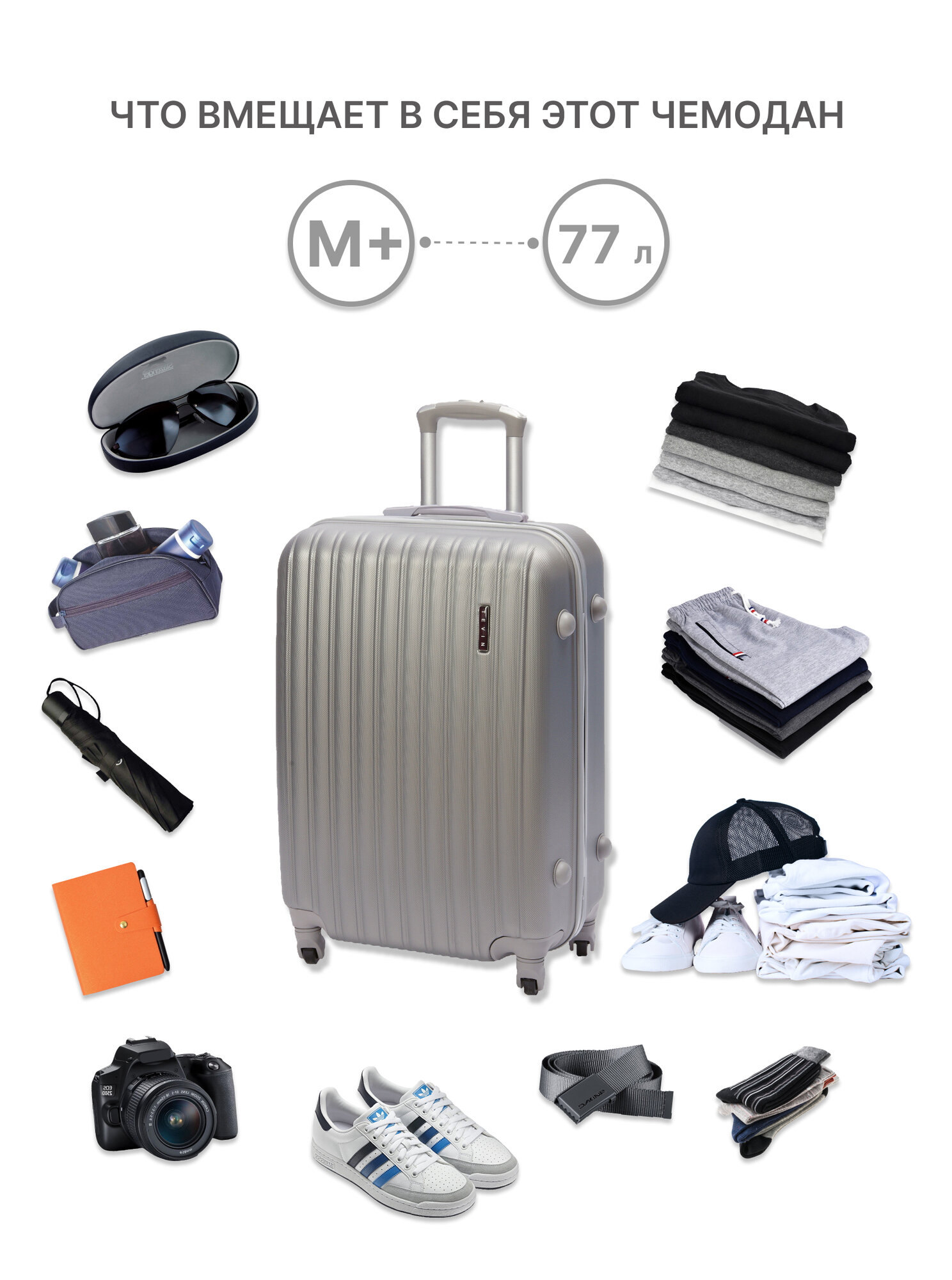 СохранитьЧемодан TEVIN, 77 л, размер M+, серый интересное: