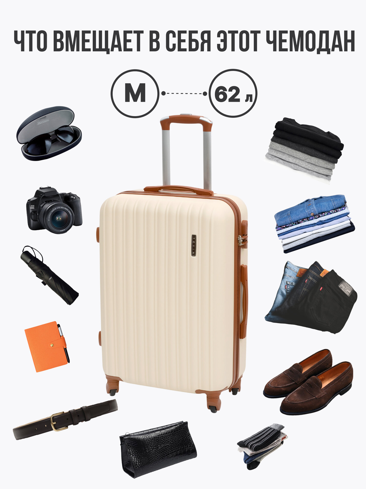 СохранитьЧемодан TEVIN, 62 л, размер M, бежевый/коричневый интересное:
