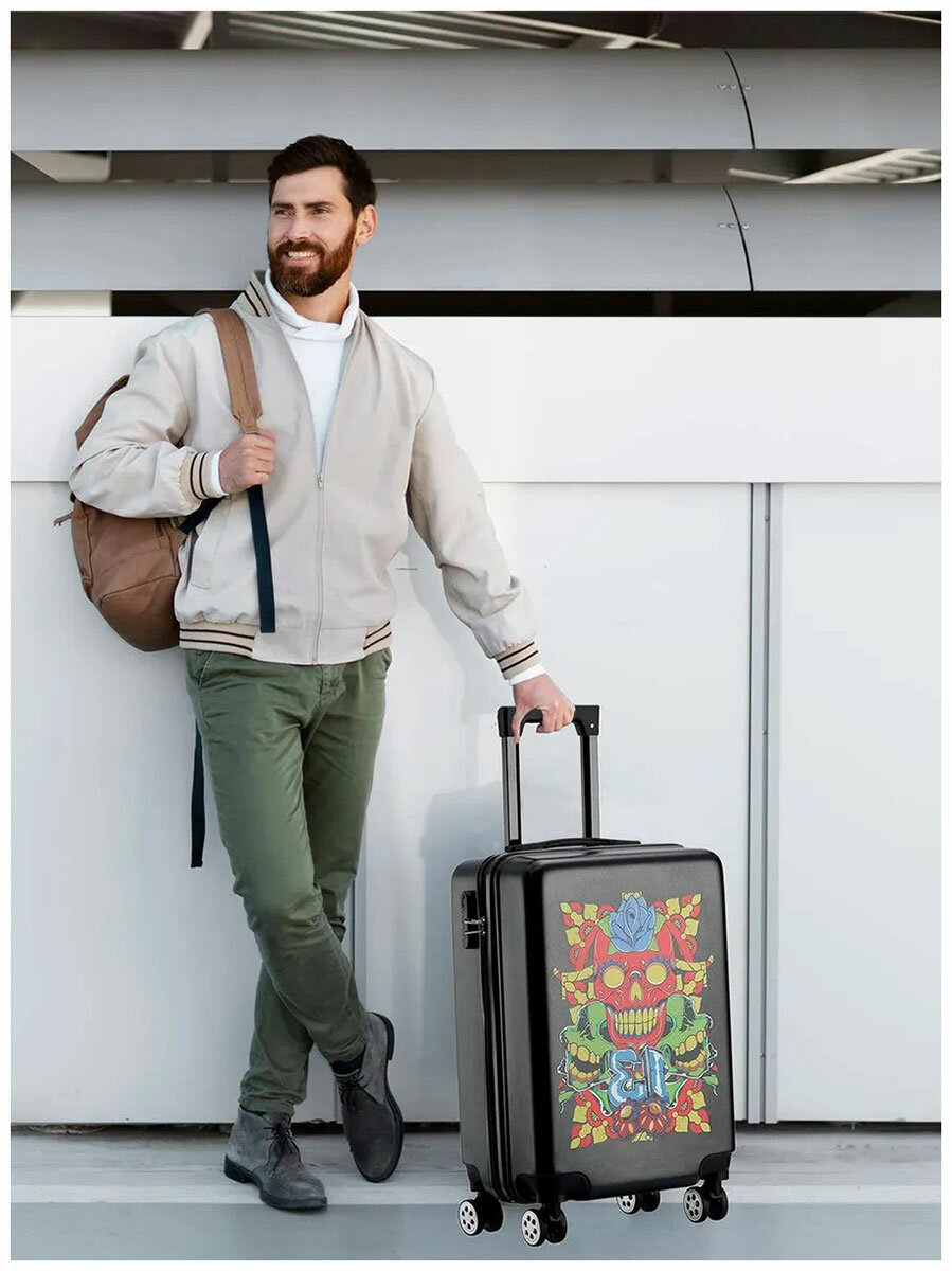 Чемодан Lats 20 дюймов, Magio, Череп, черный (648)