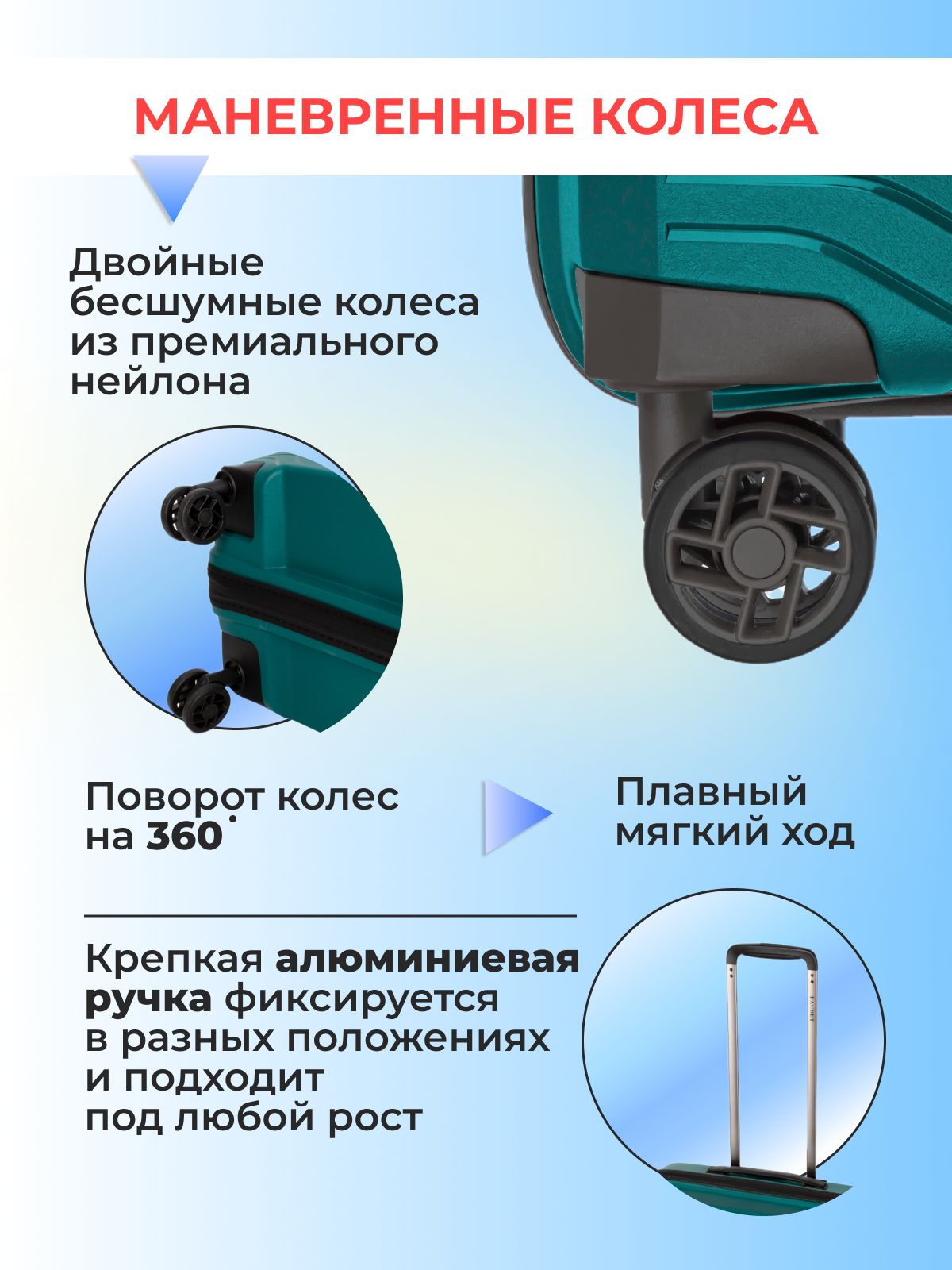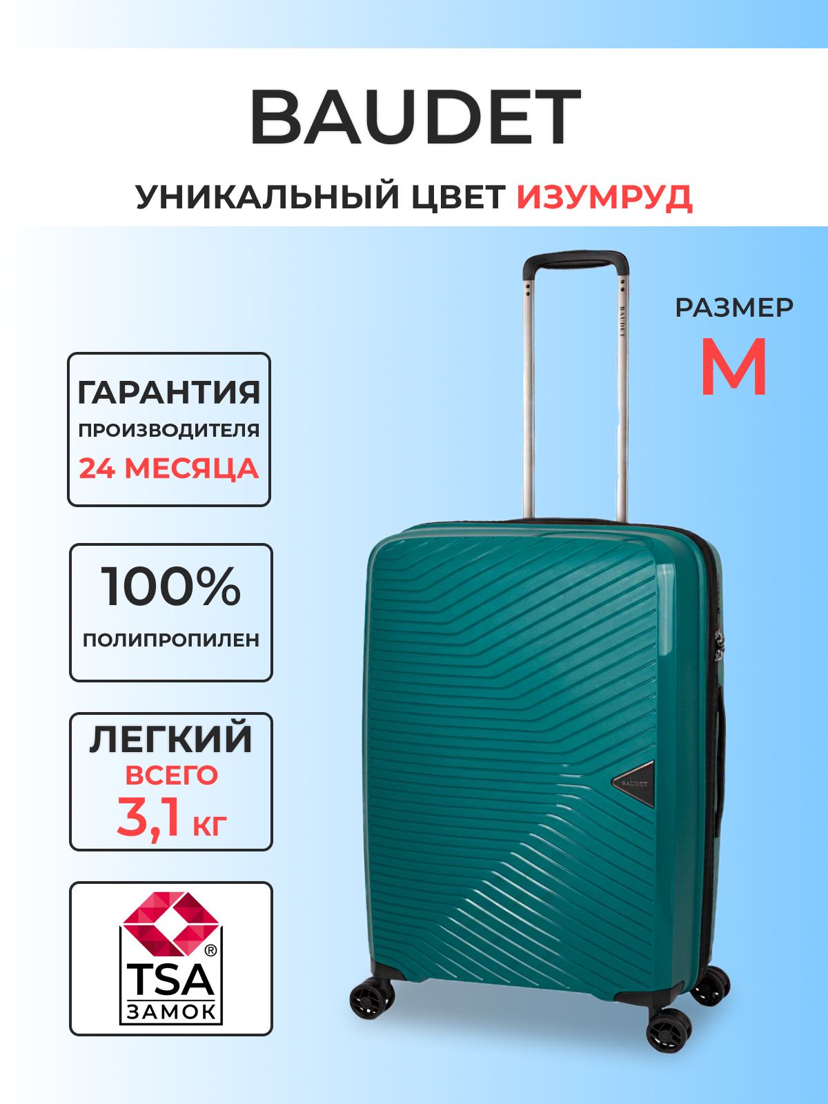 Чемодан на колесах BAUDET 812-67 (изумрудный/черный) M-средний, из полипропилена, 65,6 л