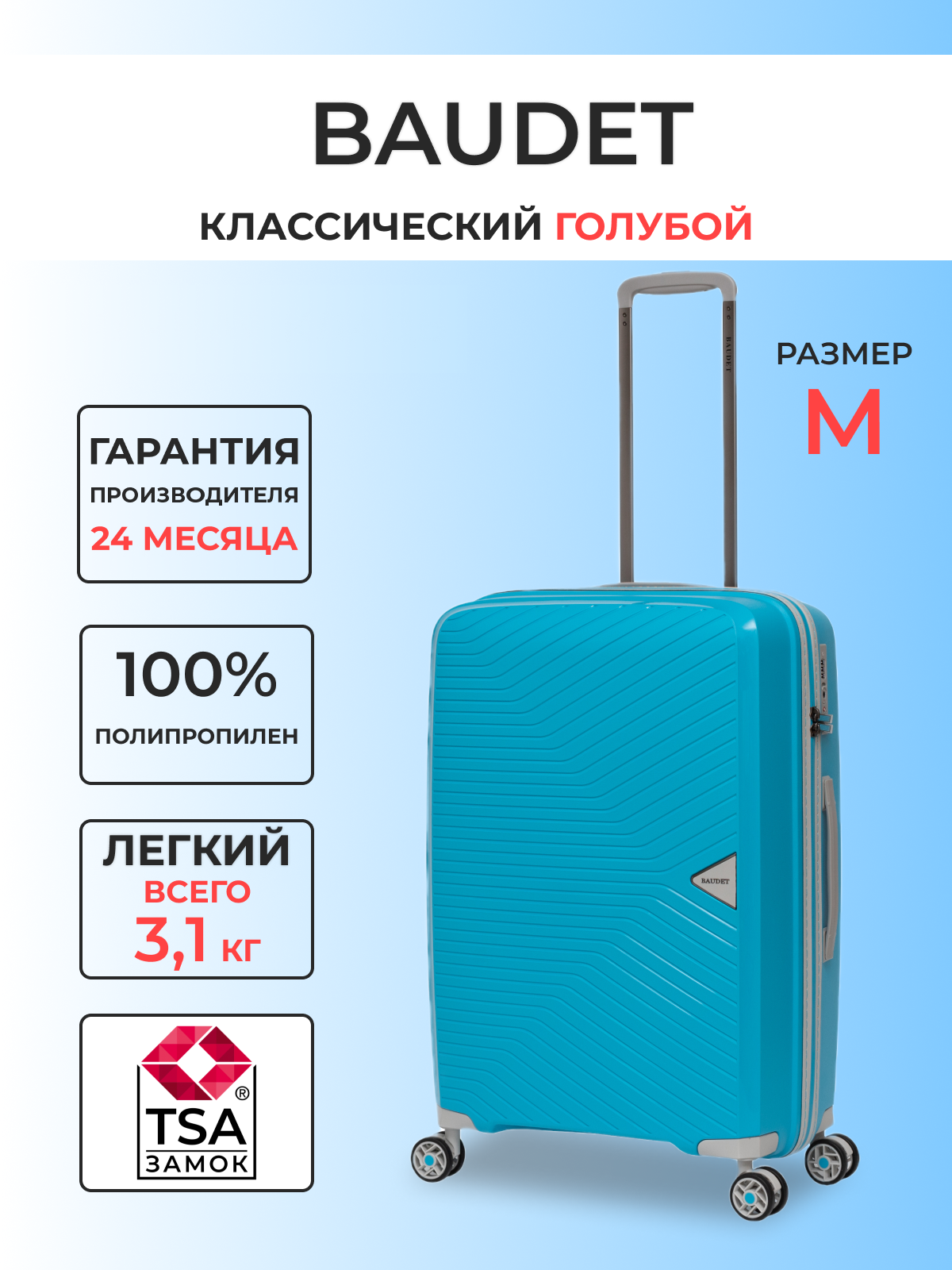Чемодан на колесах BAUDET 812-67 (голубой/серый) M-средний, из полипропилена, 65,6 л