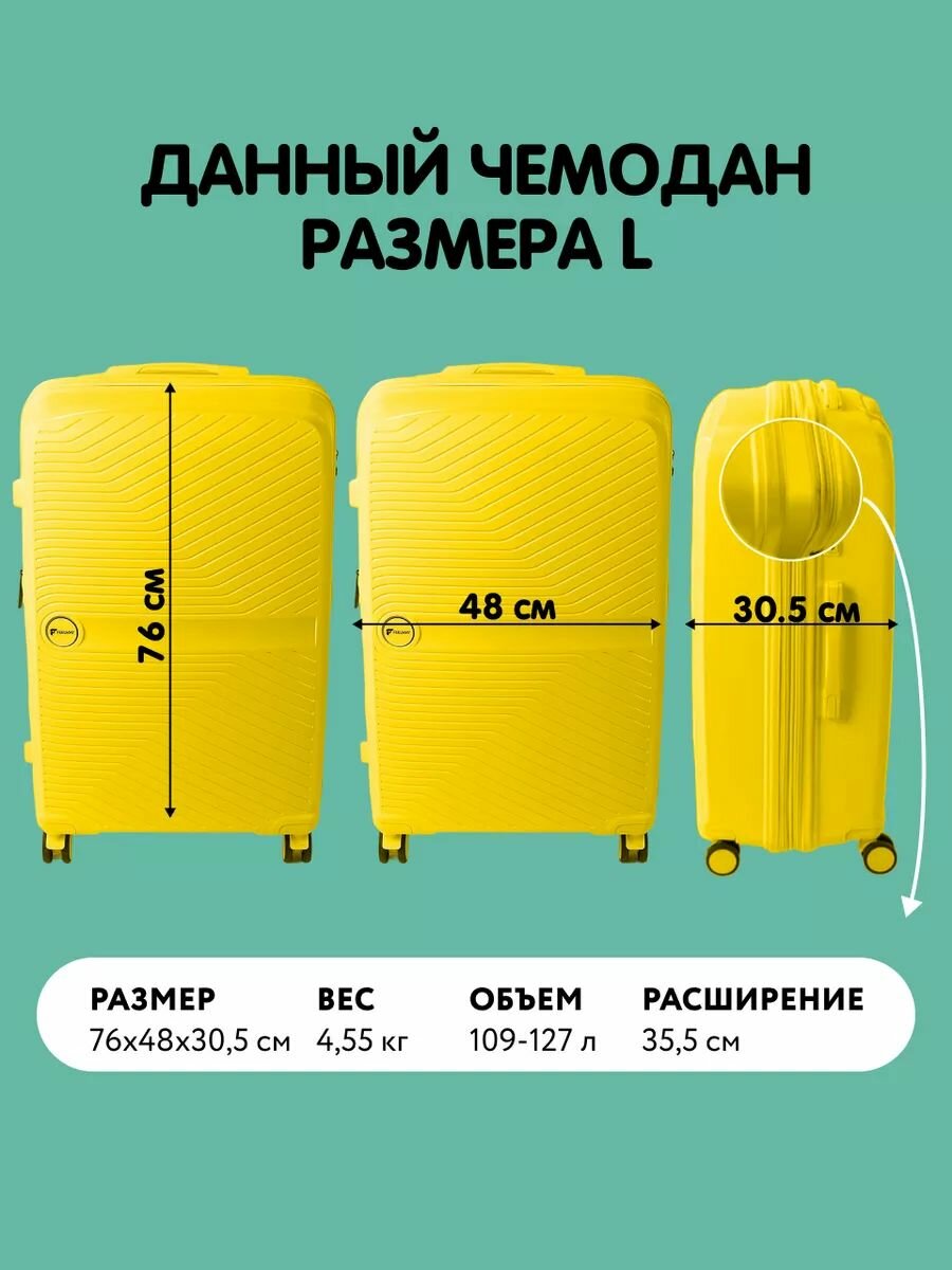 Чемодан на колесах L желтый чемодан большой чемодан L