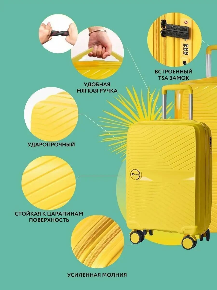 Чемодан FEELWAY, размер S, ярко-желтый