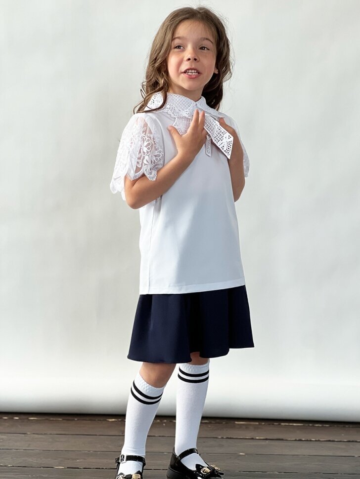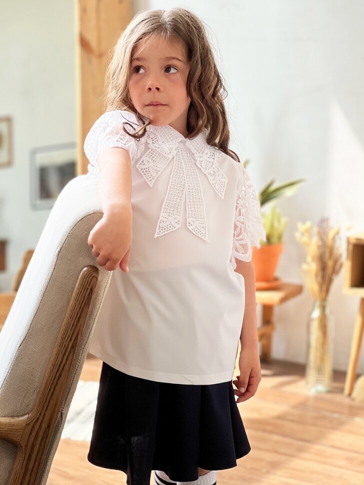 Блузка для девочек школьная бушон, модель SK54, цвет белый (128)