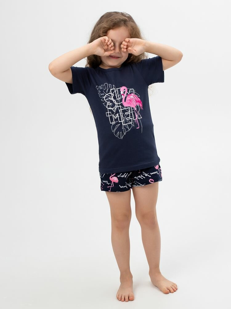 Пижама детская, модель 326, трикотаж (Фламинго, синий), 34